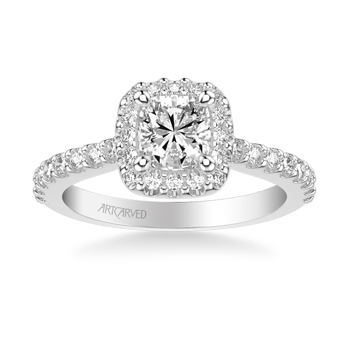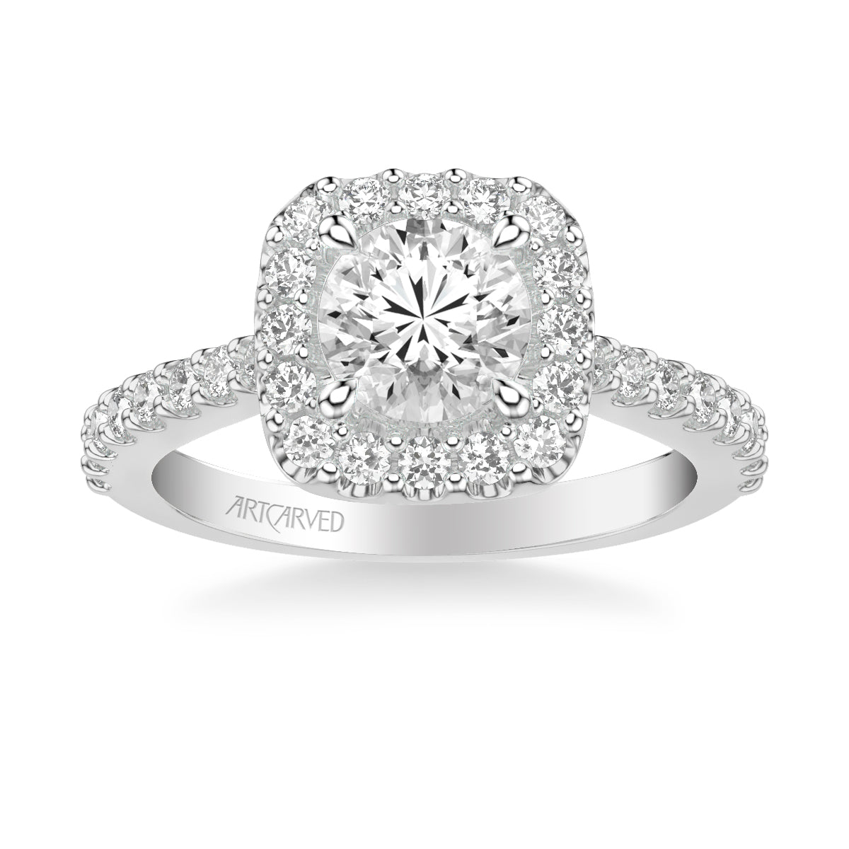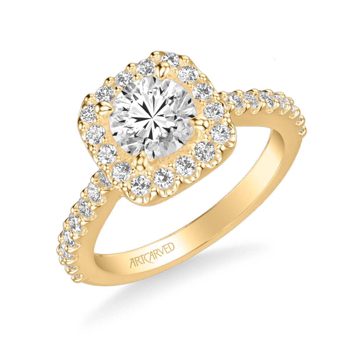 This Halo Diamond Engagement Ring is the one you've been dreaming of. You'll say 'yes' when he proposes with this round diamond halo stunner. The diamond band and diamond gallery adds even more sparkle to this classic halo style.