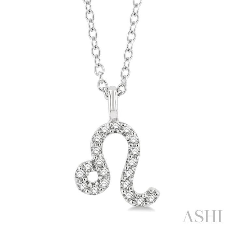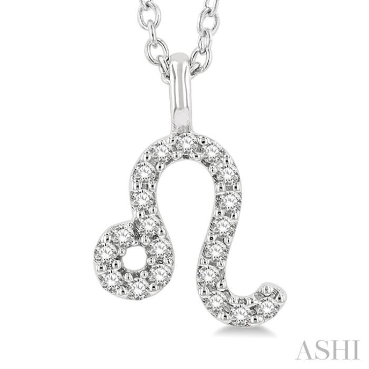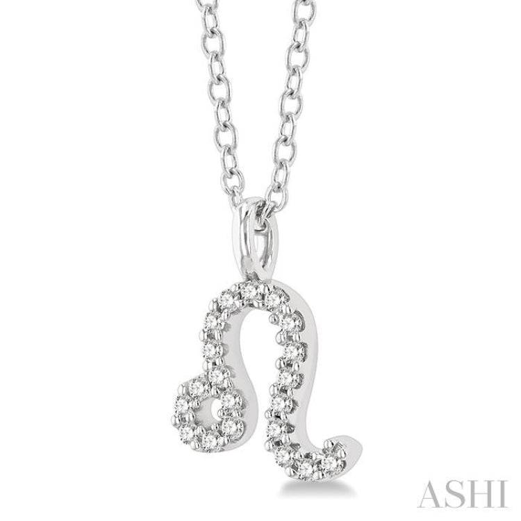 1/10 Ctw Leo Round Cut Diamond Zodiac Pendant With Chain in 14K White Gold