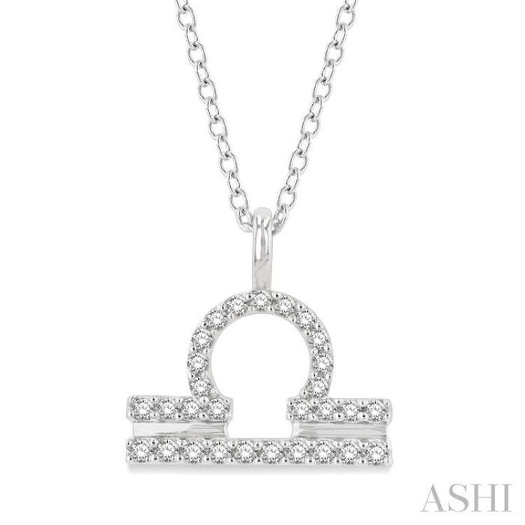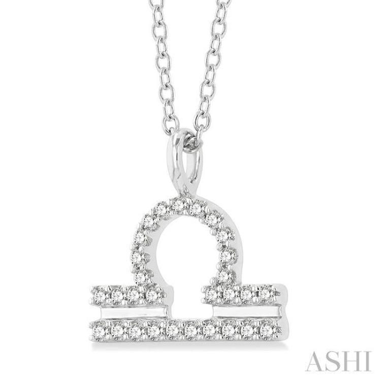 1/8 Ctw Libra Round Cut Diamond Zodiac Pendant With Chain in 14K White Gold