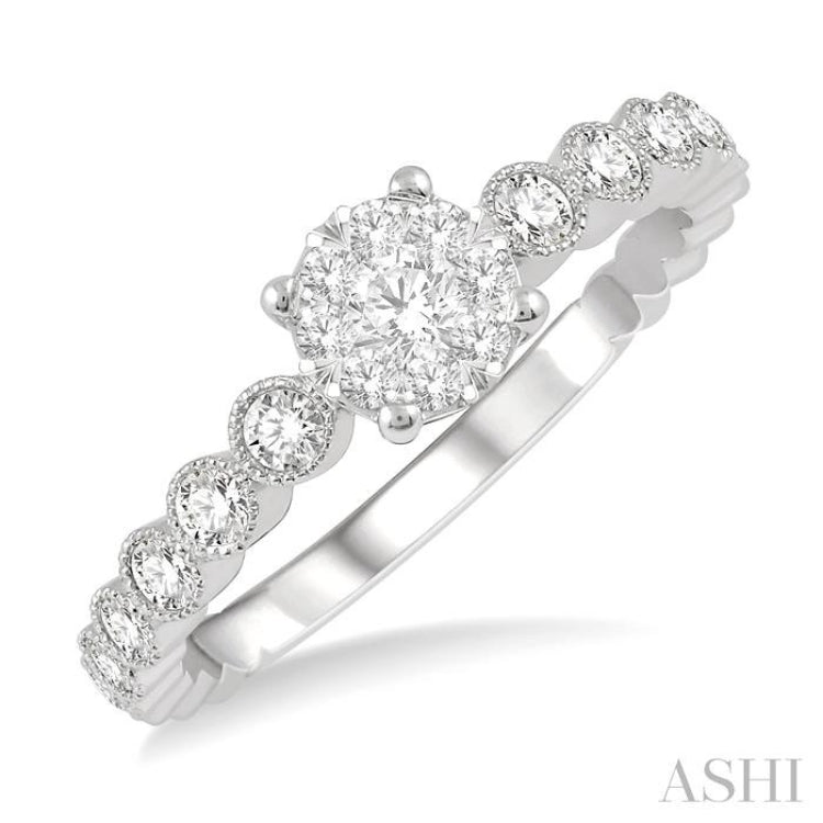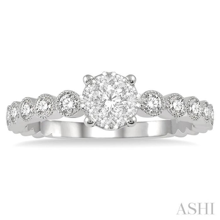 1/3 Ctw Round Shape Lattice Lovebright Diamond Cluster Ring in 14K White Gold