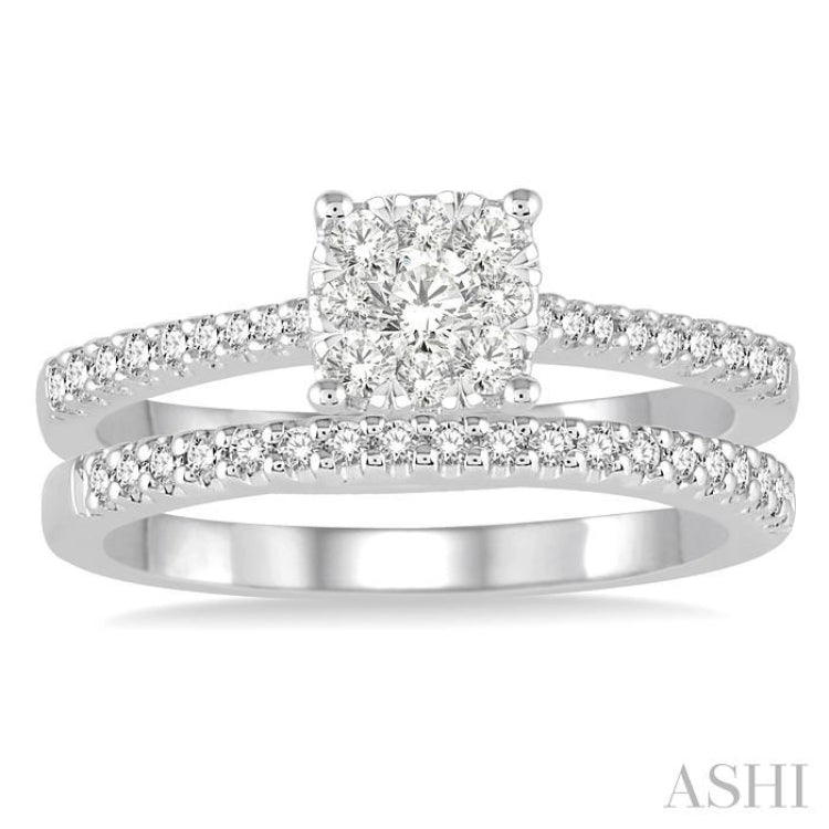 1/2 Ctw Round Cut Diamond Square Shape Lovebright Bridal Set with 3/8 Ctw Engagement Ring and 1/6 Ctw Wedding Band in 14K White Gold