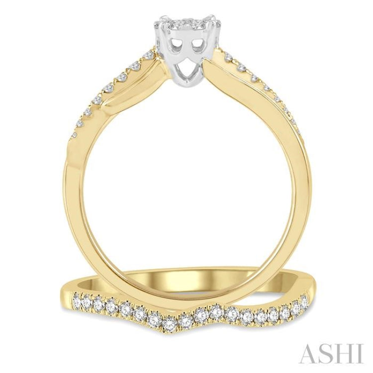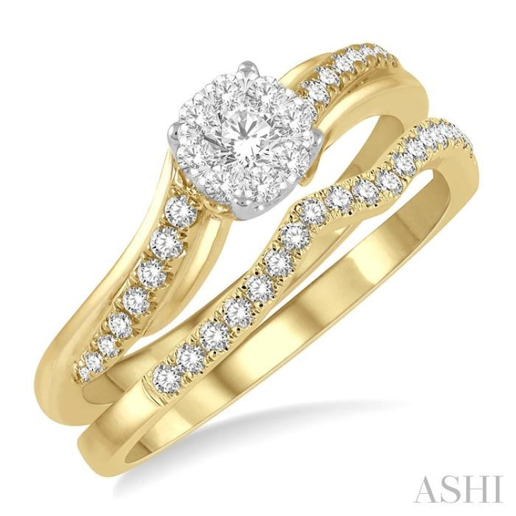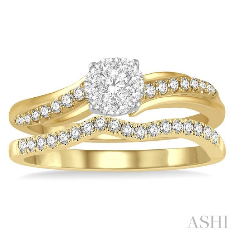1/2 ctw Lovebright Diamond Wedding Set With 1/3 ctw Circular Mount Engagement Ring and 1/6 ctw Chevron Wedding Band in 14K Yellow and White Gold