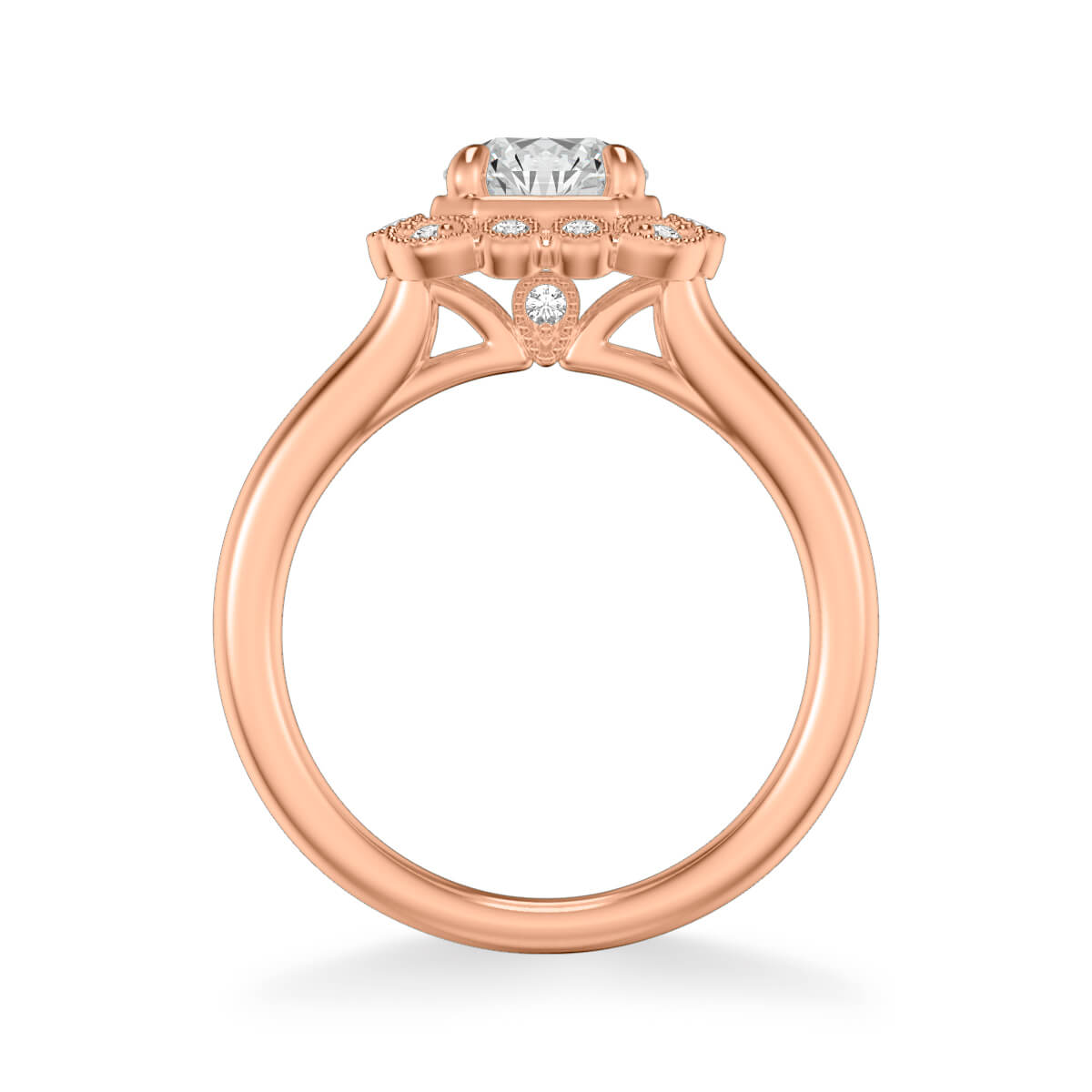 This Halo Diamond Engagement Ring is a modern take on vintage. A multi-shape halo surrounds the center stone for a romantic look. The high polish band is understated and simply elegant.