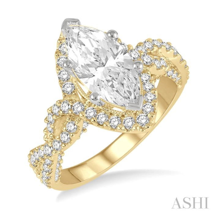 3/4 ctw Split Entwined Shank Marquise Shape Center Round Cut Diamond Semi-Mount Engagement Ring in 14K Yellow and White Gold