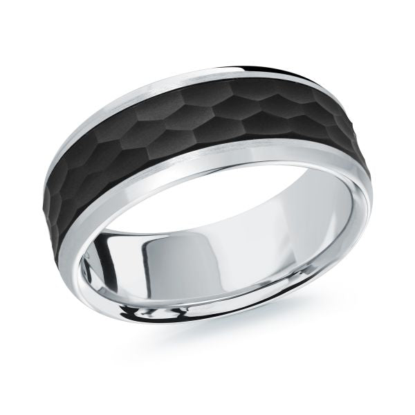 Malo 14K Carbon Fiber and White Gold Men's Wedding Band 8mm MRDA-129-8W