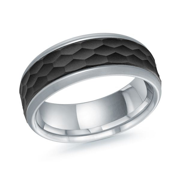 Malo 14K Carbon Fiber and White Gold Men's Wedding Band 8mm MRDA-130-8W