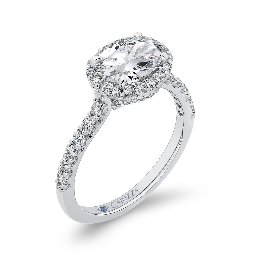 Oval Cut Diamond Halo Engagement Ring in 14K White Gold (Semi-Mount)