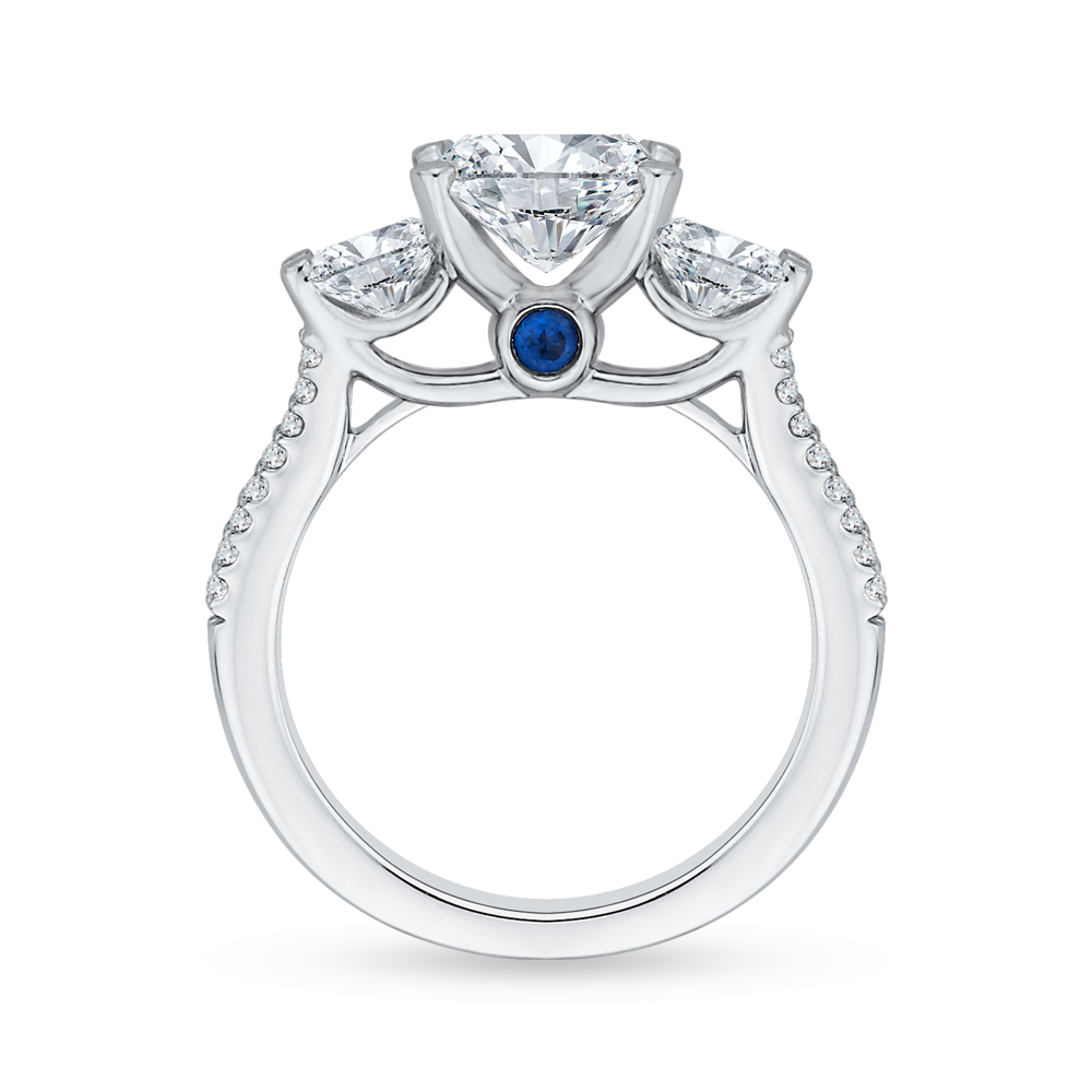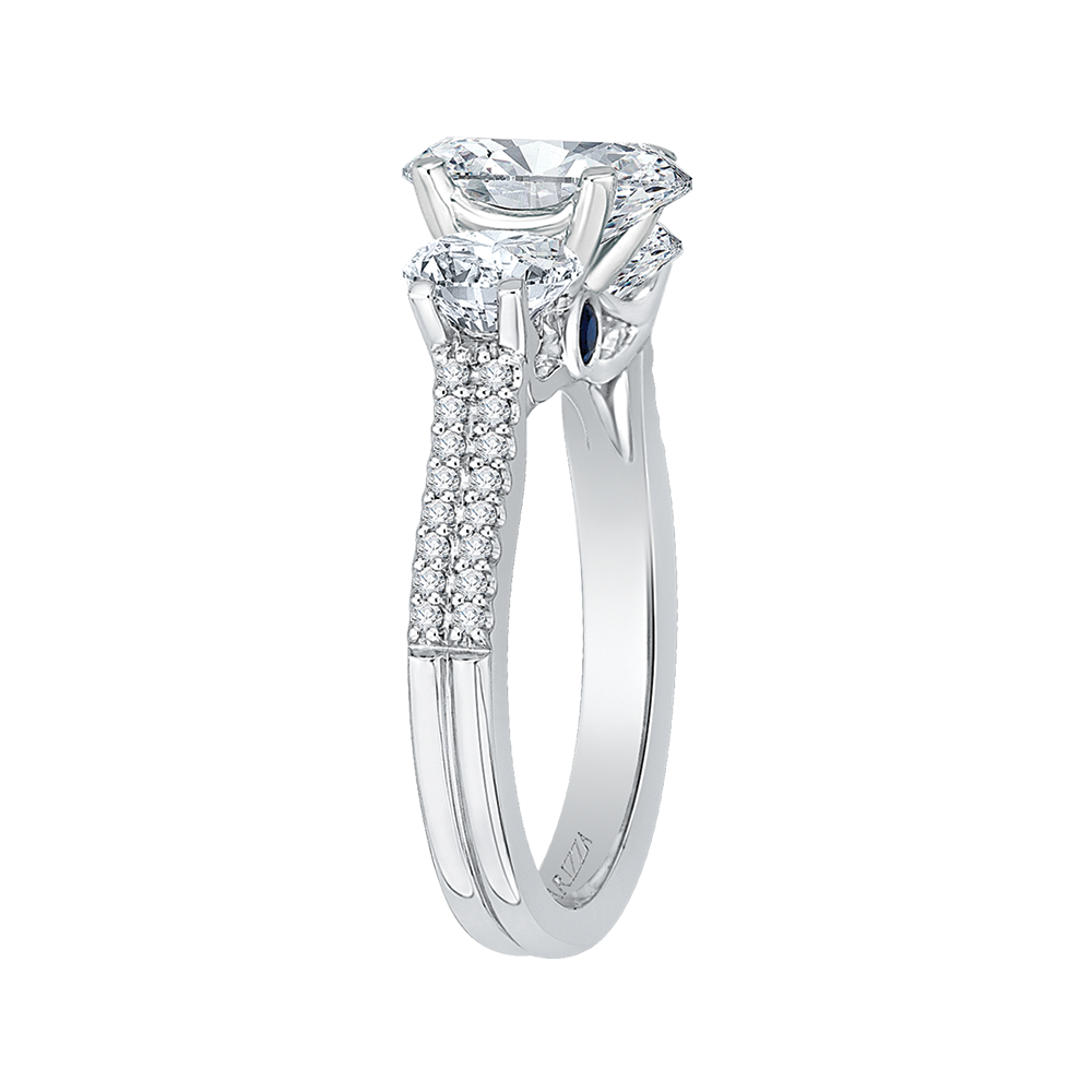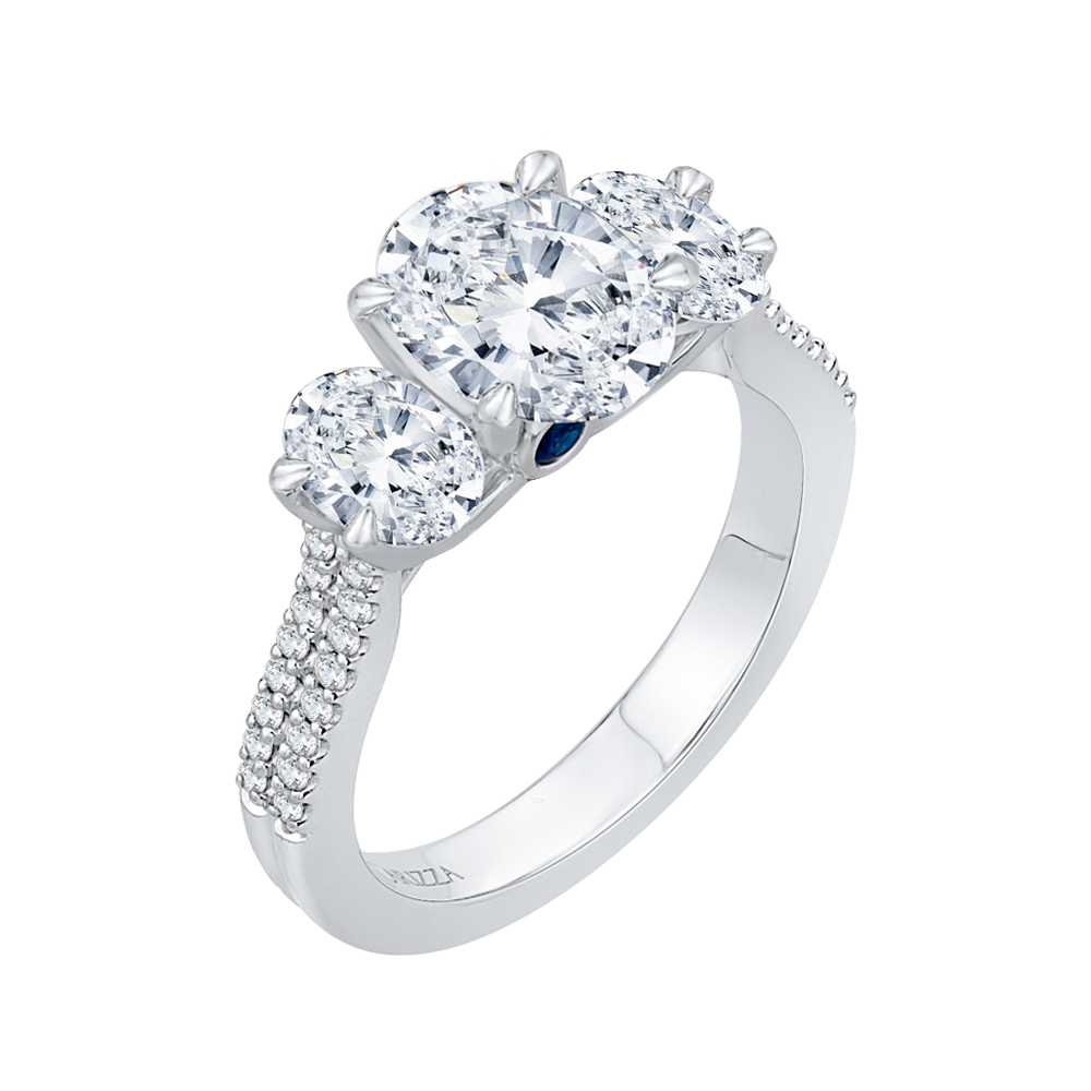 Oval Cut Diamond Three-Stone Cathedral Style Engagement Ring in 14K White Gold (Semi-Mount)