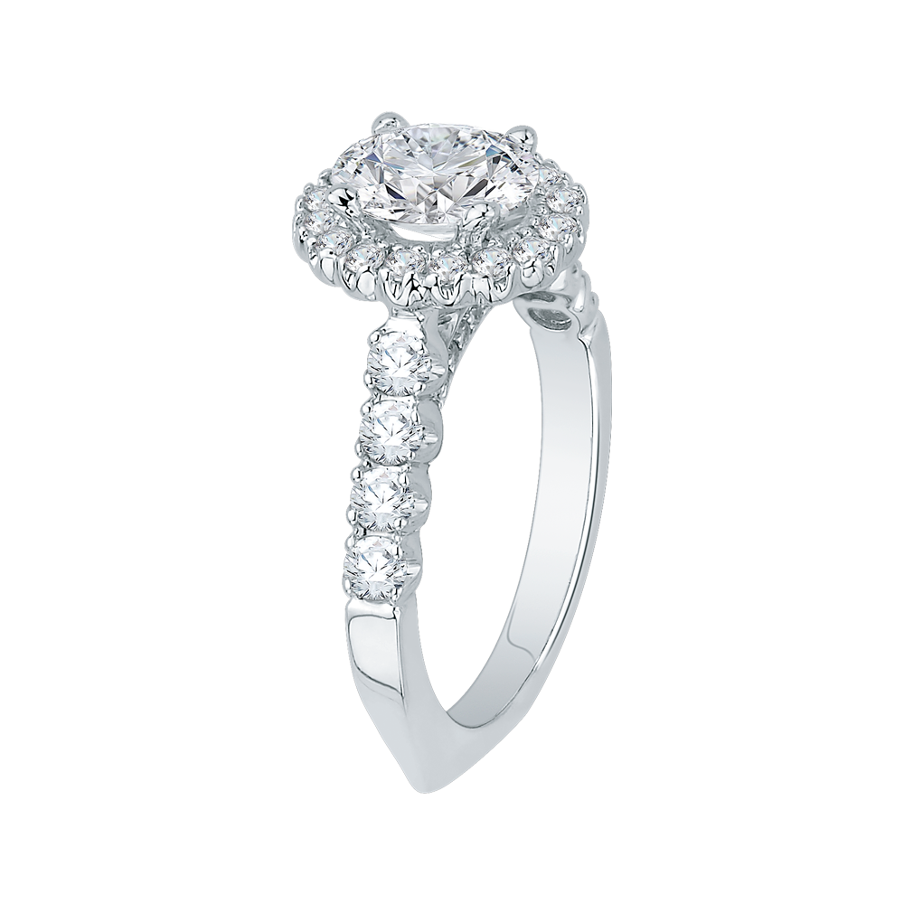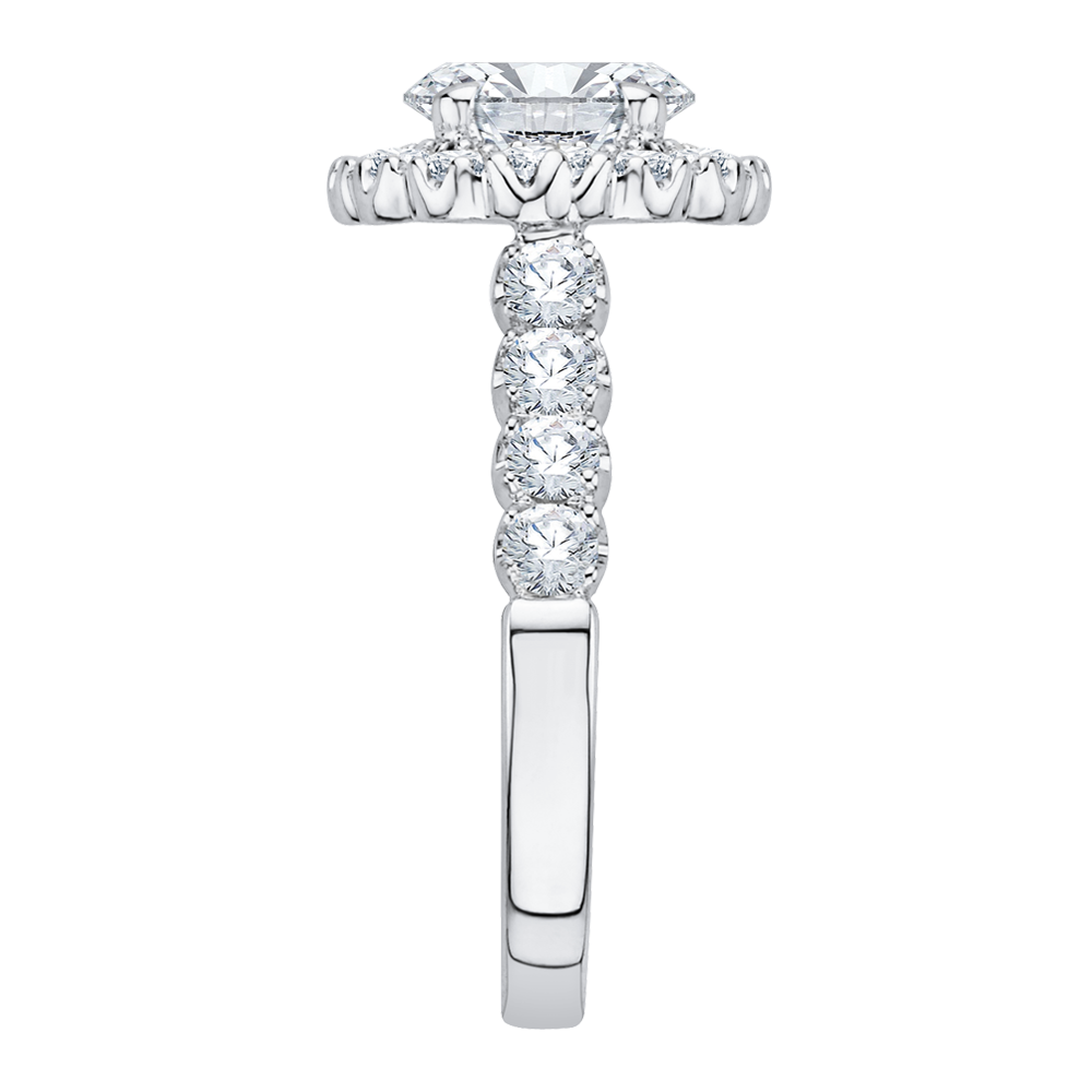 Oval Shape Diamond Halo Engagement Ring with Band In 14K White Gold (Semi-Mount)