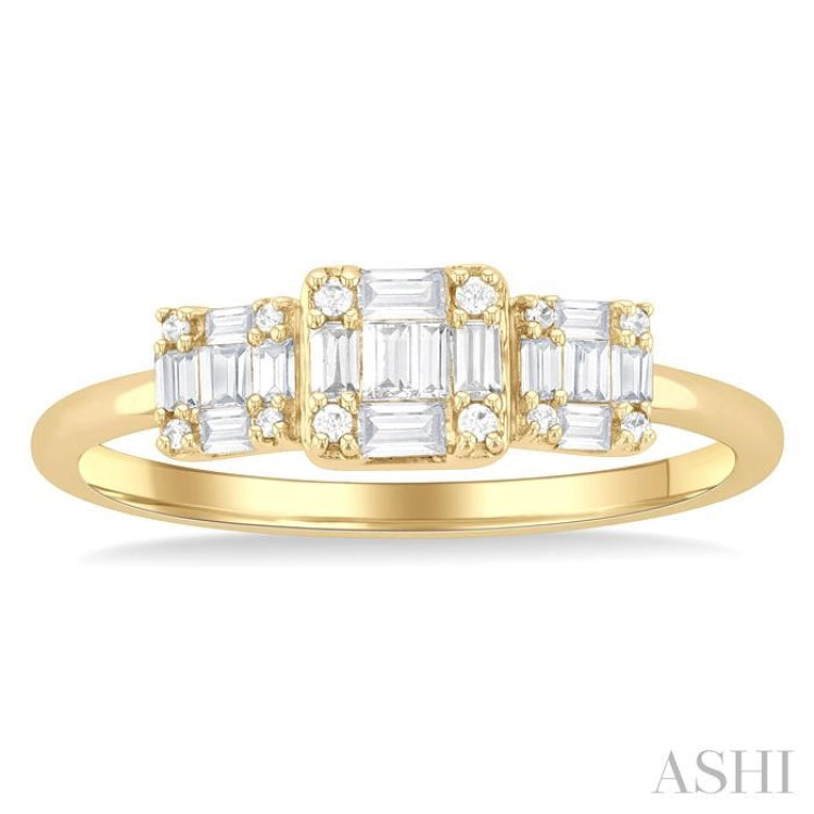 1/4 ctw Past, Present & Future Baguette and Round Cut Diamond Fusion Fashion Ring in 14K Yellow Gold