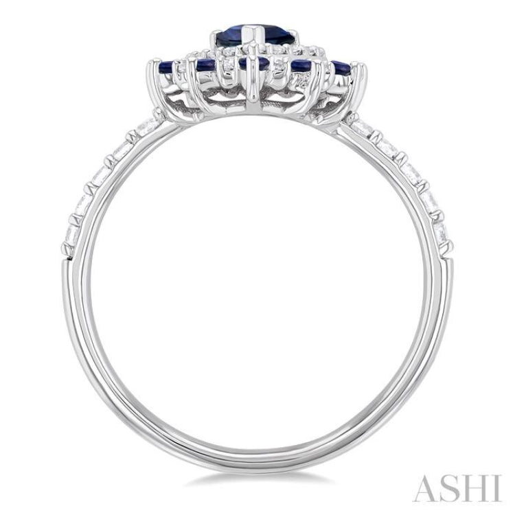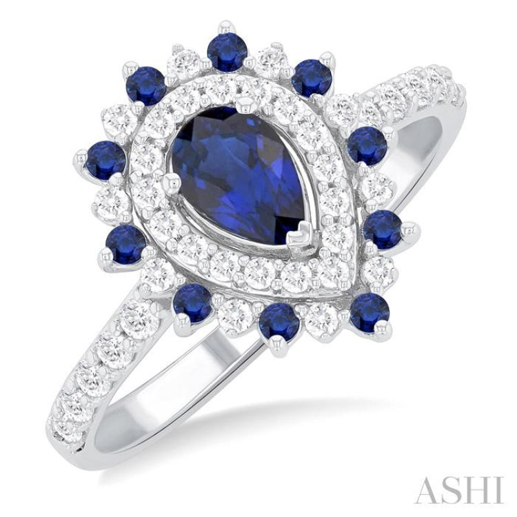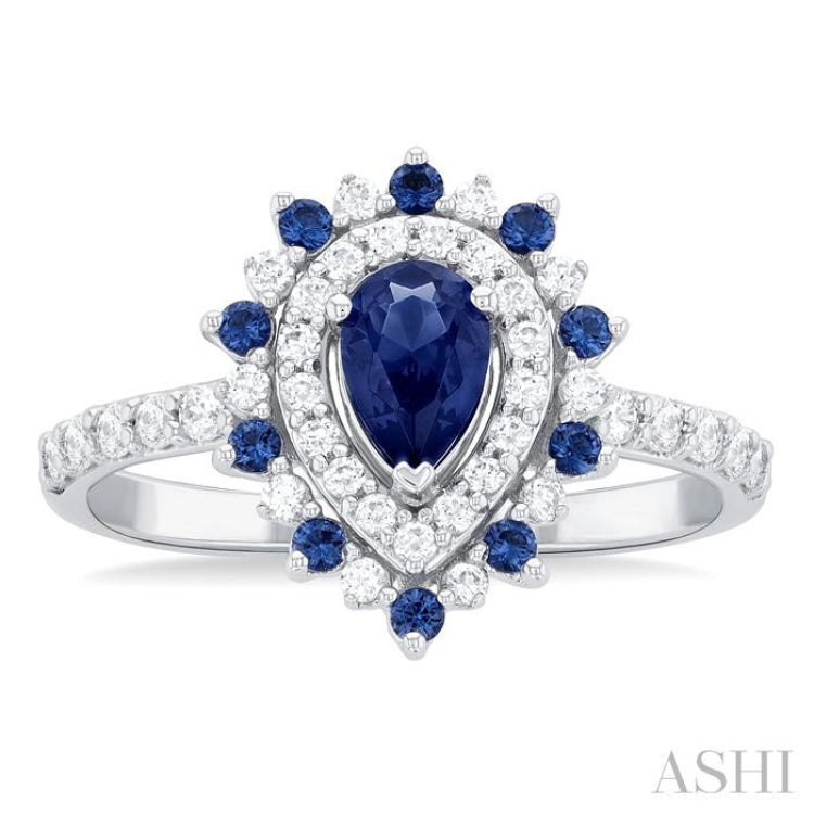 3/8 ctw Floral 6X4 MM Pear & 1.5 MM Round Cut Sapphire and Round Cut Diamond Precious Ring in 14K White Gold