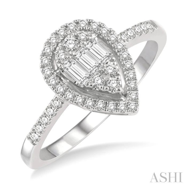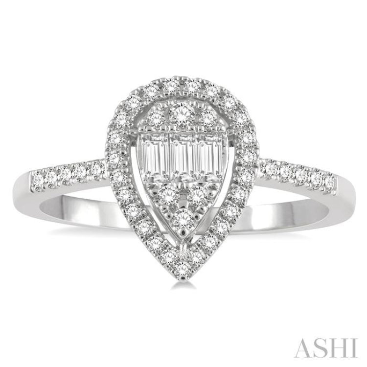 3/8 ctw Pear Shape Fusion Baguette and Round Cut Diamond Fashion Ring in 14K White Gold