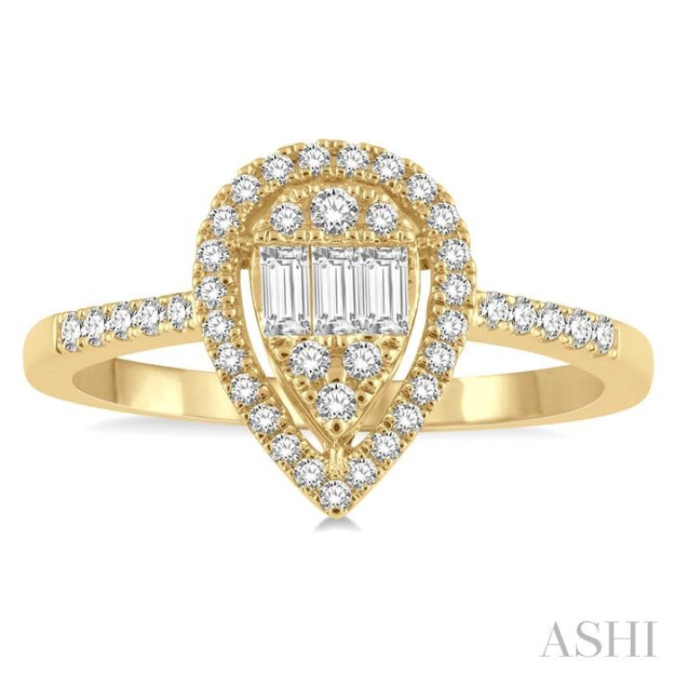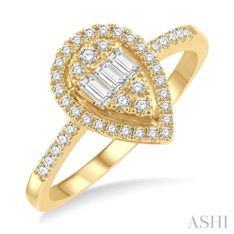 3/8 ctw Pear Shape Fusion Baguette and Round Cut Diamond Fashion Ring in 14K Yellow Gold