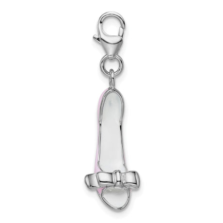 Amore La Vita Sterling Silver Rhodium-plated Polished 3-D Pink Enameled Bow-top High Heel Charm with Fancy Lobster Clasp