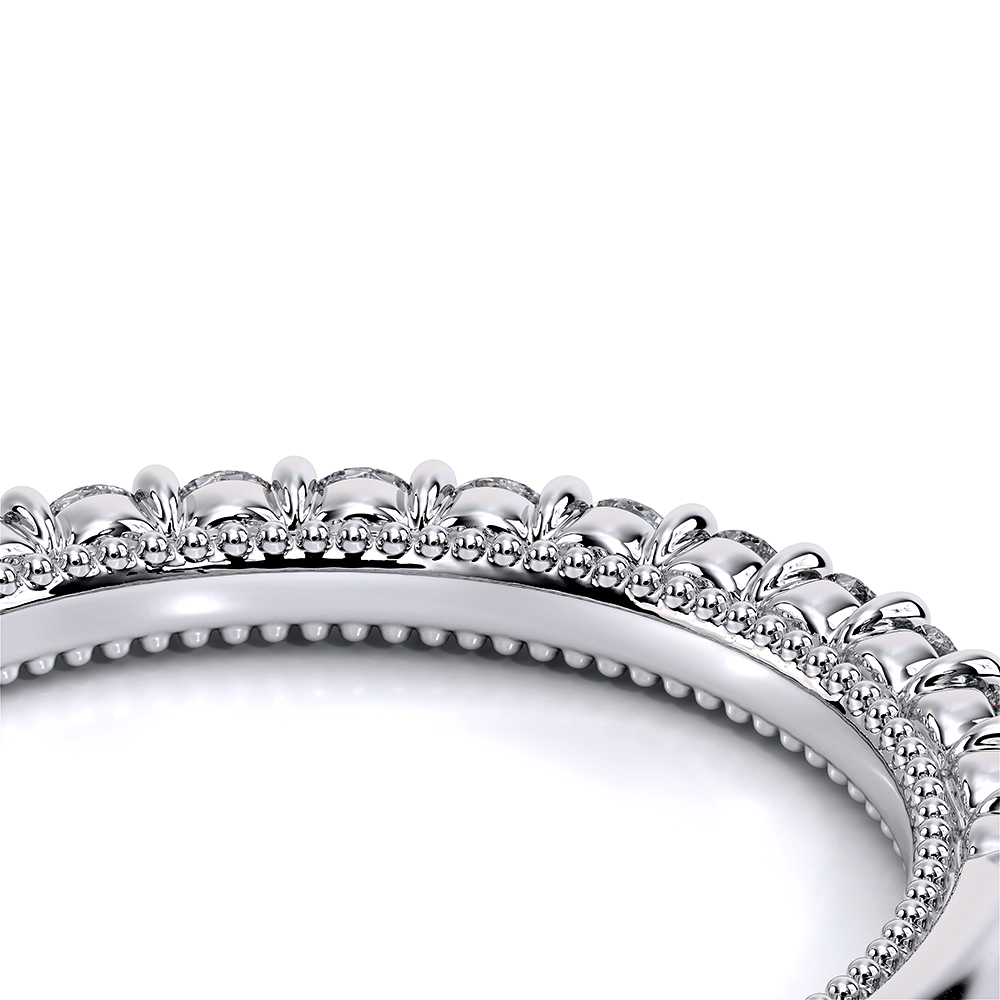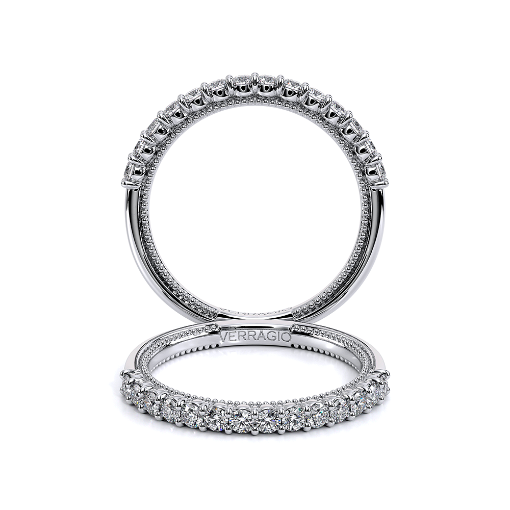 Renaissance-986W is a sleek wedding band featuring milgrain detailing on a meticulous prong-set diamond band. It's the perfect companion to Renaissance-986 engagement ring styles, completing the set.