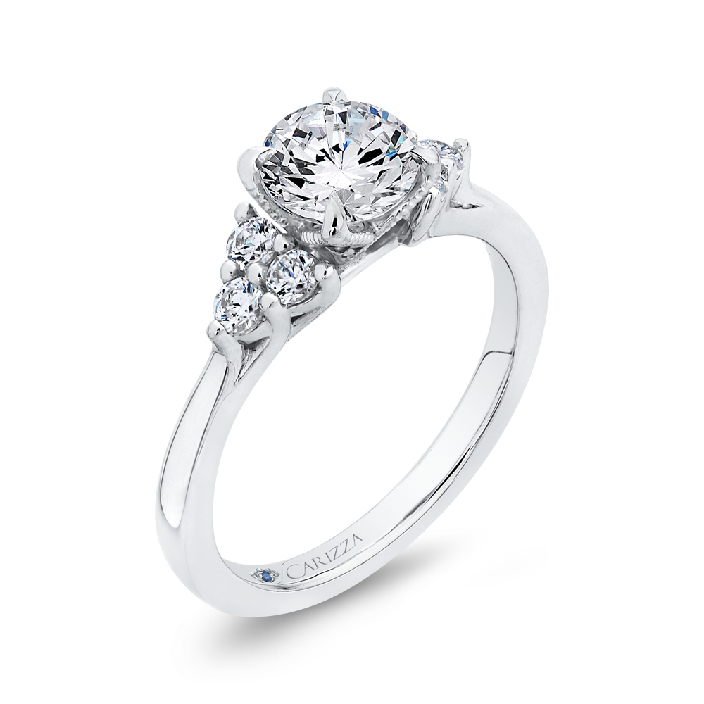 This exquisite round diamond engagement ring exudes timeless elegance and sophistication. Crafted in lustrous 14K white gold, the semi-mount setting allows you to choose the perfect center stone to symbolize your love. A classic choice for a lasting symbol of commitment and devotion.