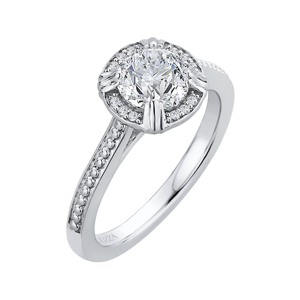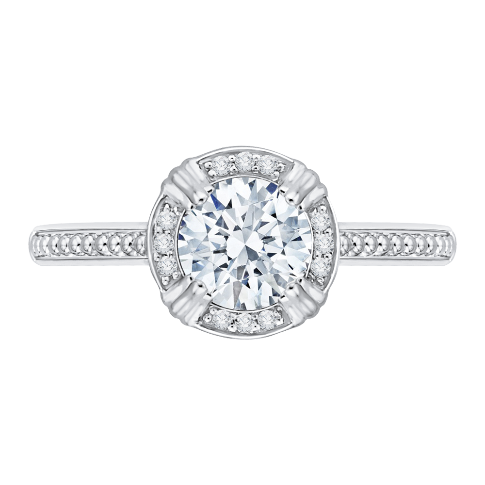 Round Diamond Halo Cathedral Style Engagement Ring in 14K White Gold (Semi-Mount)