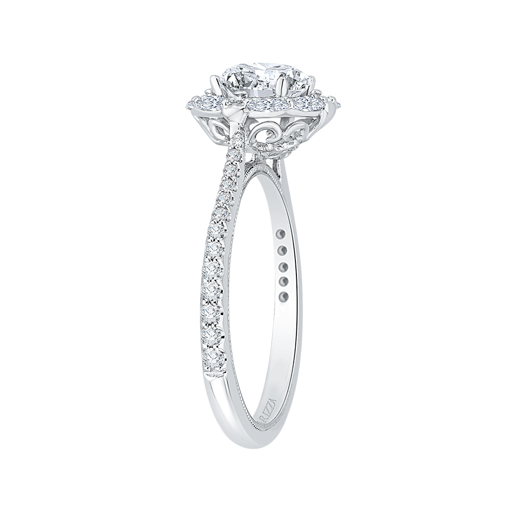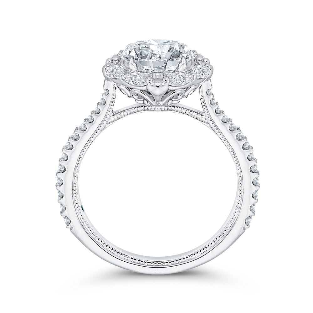 Round Diamond Halo Engagement Ring in 14K White Gold (Semi-Mount)