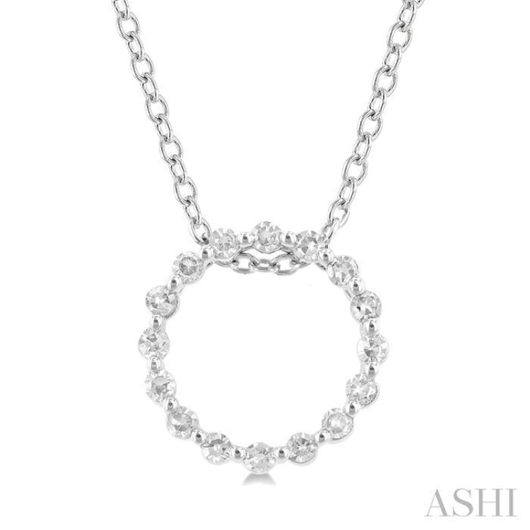 1/10 ctw Circle Round Cut Diamond Pendant With Chain in Sterling Silver