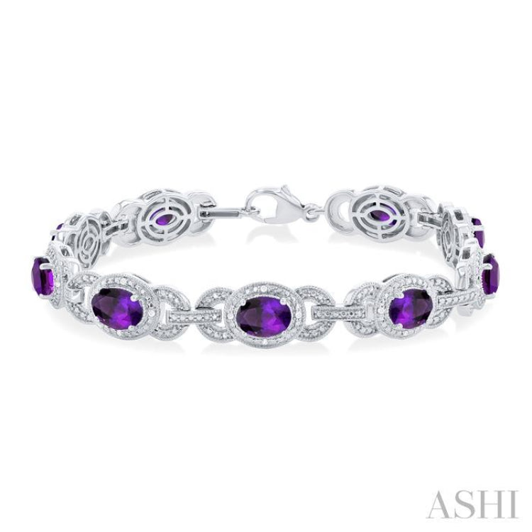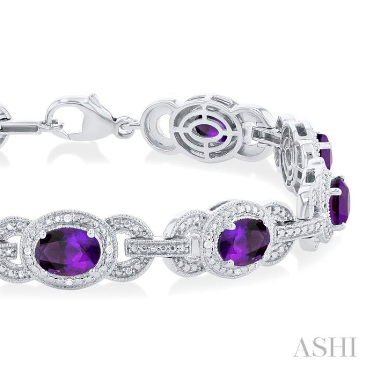 1/10 ctw Oval Cut 7x5MM Amethyst and Round Cut Diamond Semi Precious Bracelet in Sterling Silver