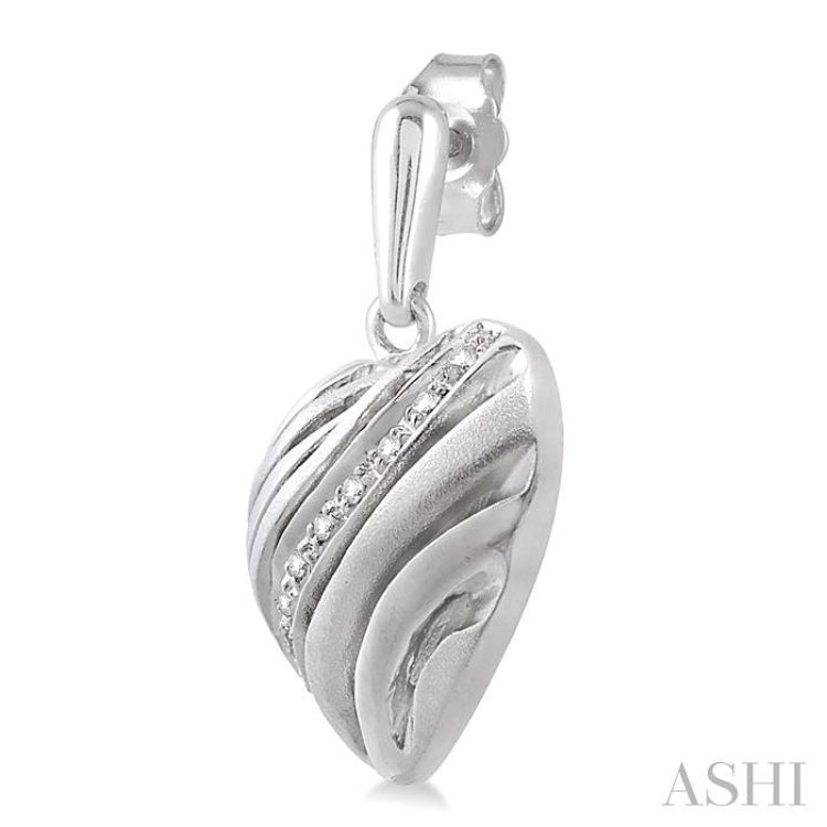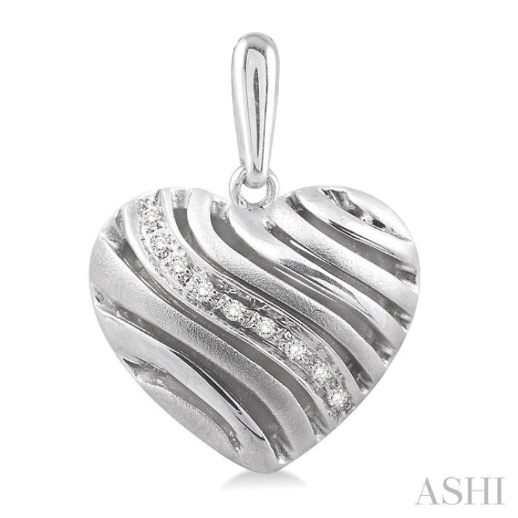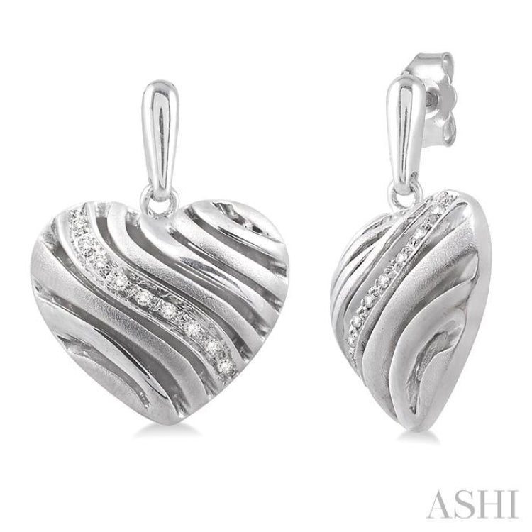 Steal her heart with these chic diamond puff earrings. FAshioned in glowing sterling silver these heart shape puff designed earrings features an array of sparkling 18 pave set single cut diamonds nestled among the gently curves of sterling silver. These treats closes with a secure clasp. Total diamond weight is 1/10 ctw.