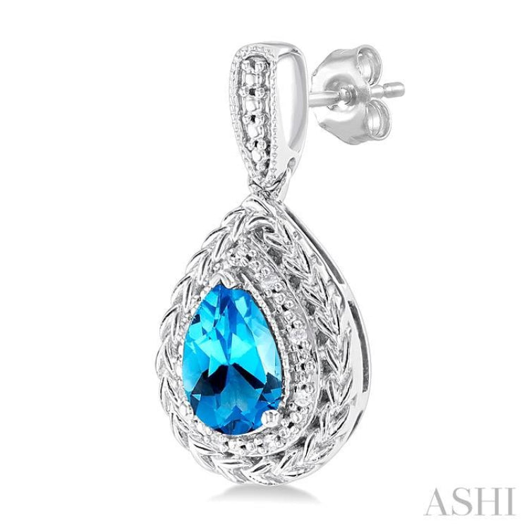 1/20 ctw Pear Cut 7X5MM Blue Topaz and Round Cut Diamond Semi Precious Earring in Sterling Silver
