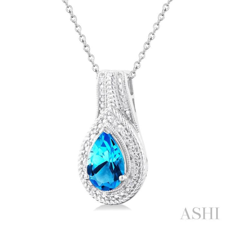 1/20 ctw Pear Cut 9X6 MM Blue Topaz and Round Cut Diamond Waterfall Loop Semi Precious Pendant With Chain in Sterling Silver