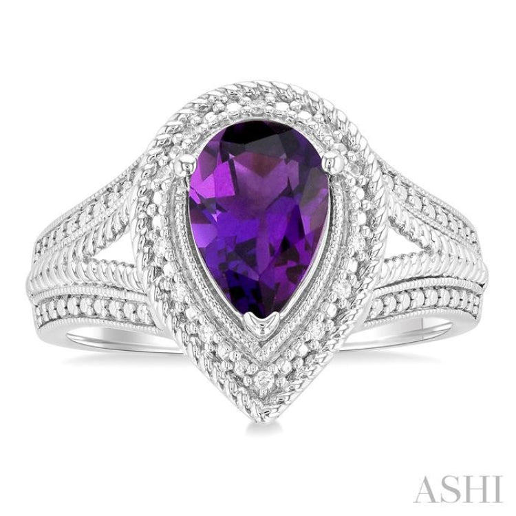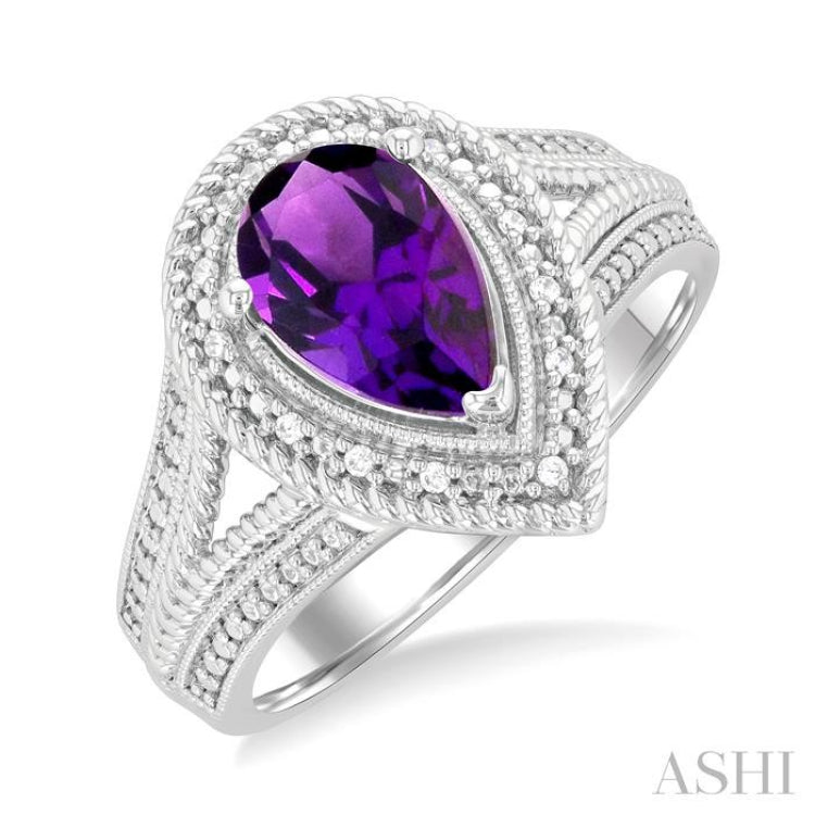 1/20 ctw Pear Cut 9X6MM Amethyst and Round Cut Diamond Semi Precious Ring in Silver