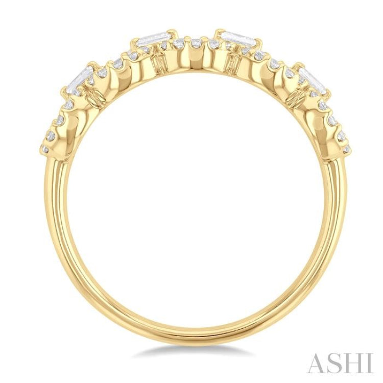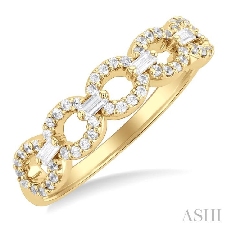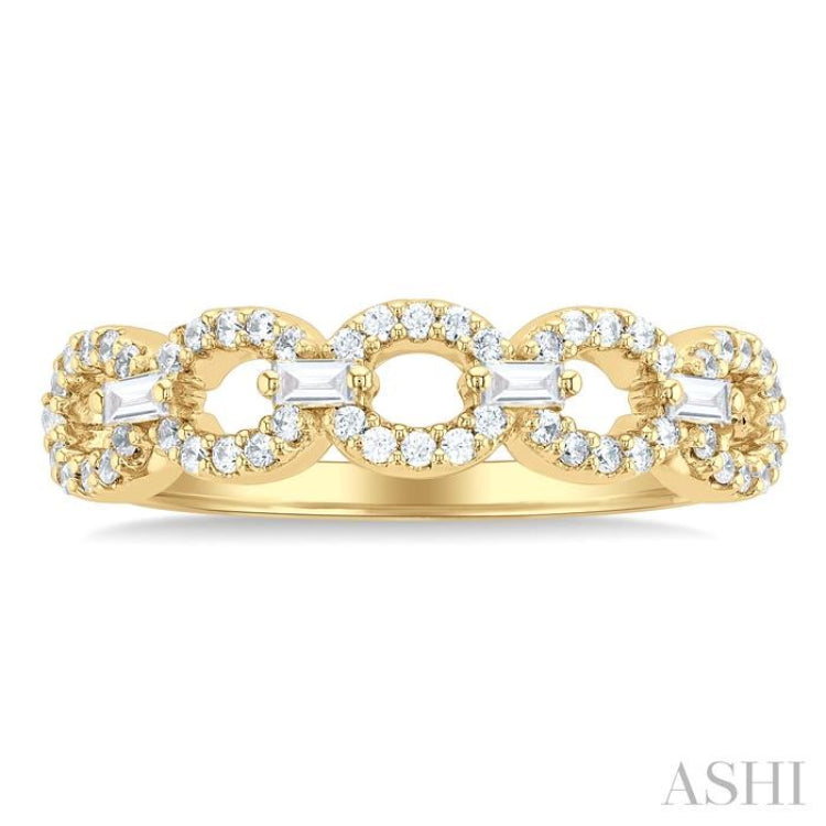 1/4 ctw Open Link Baguette And Round Cut Diamond Stackable Fashion Band in 10K Yellow Gold
