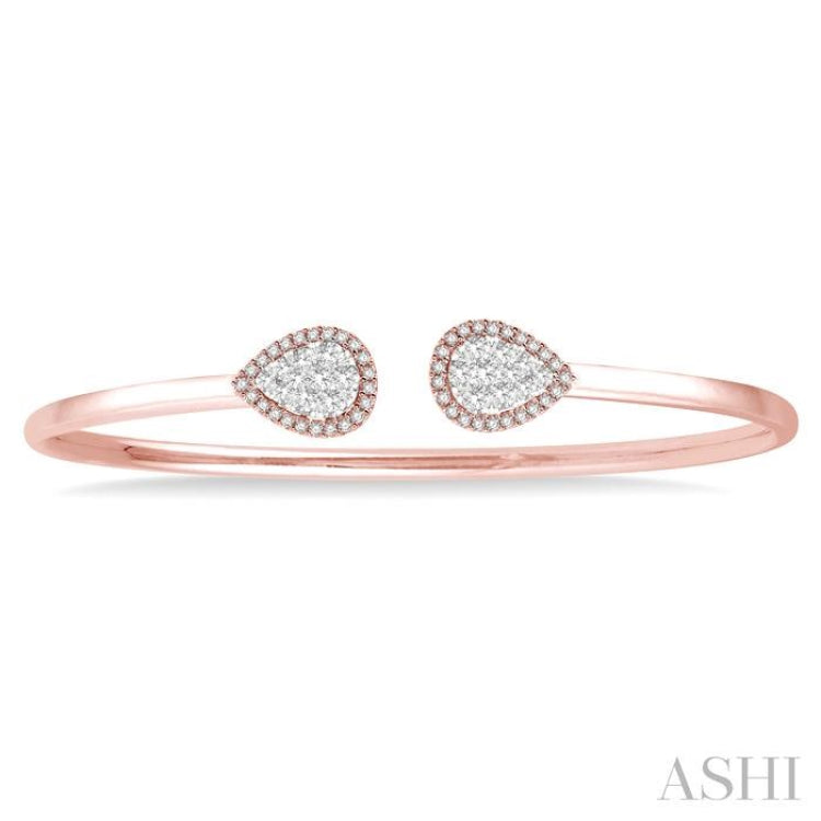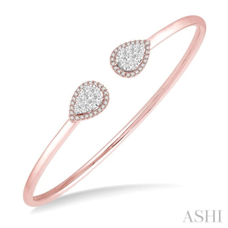 5/8 Ctw Pear Shape Lovebright Open Cuff Diamond Bangle in 14K Rose and White Gold