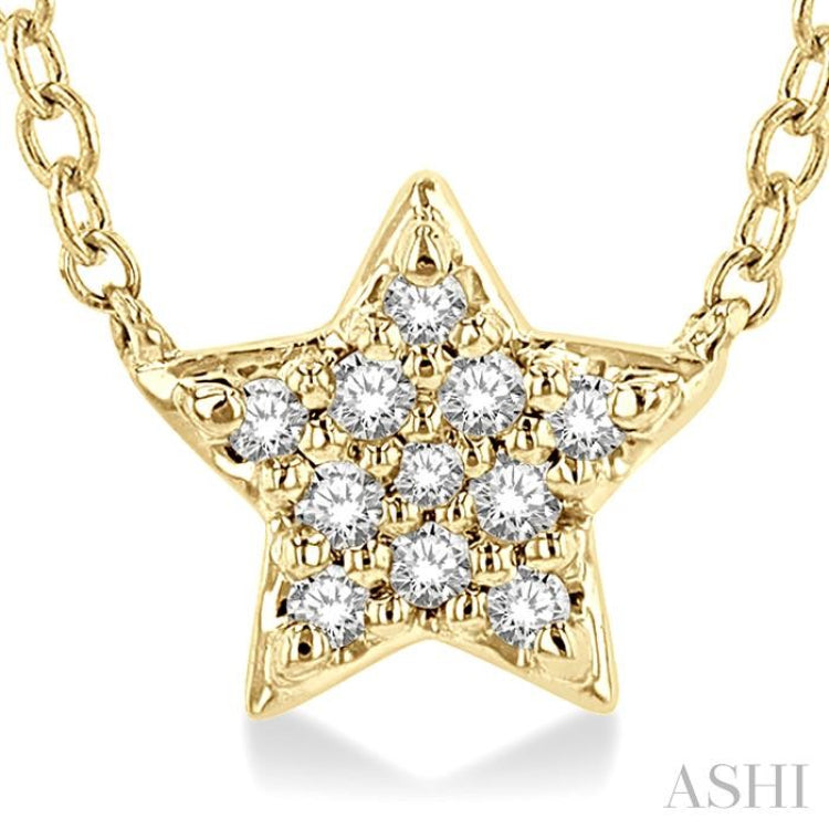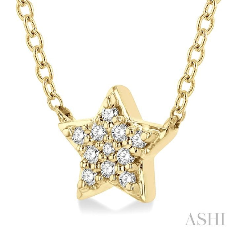 1/10 Ctw Star Round Cut Diamond Petite Fashion Pendant With Chain in 14K Yellow Gold