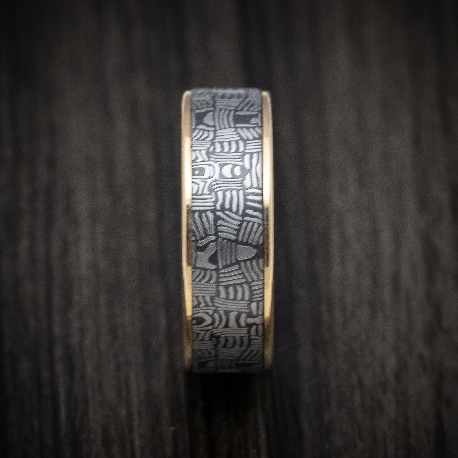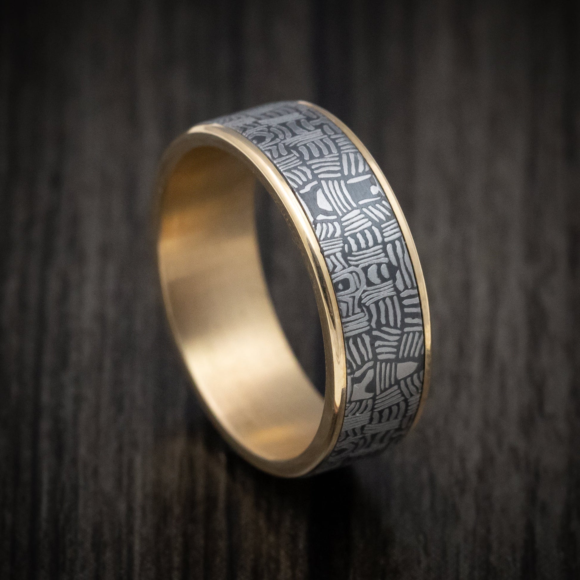 Tamascus+ Tantalum and 14K Gold Men's Ring Basketweave Pattern Custom Made Band