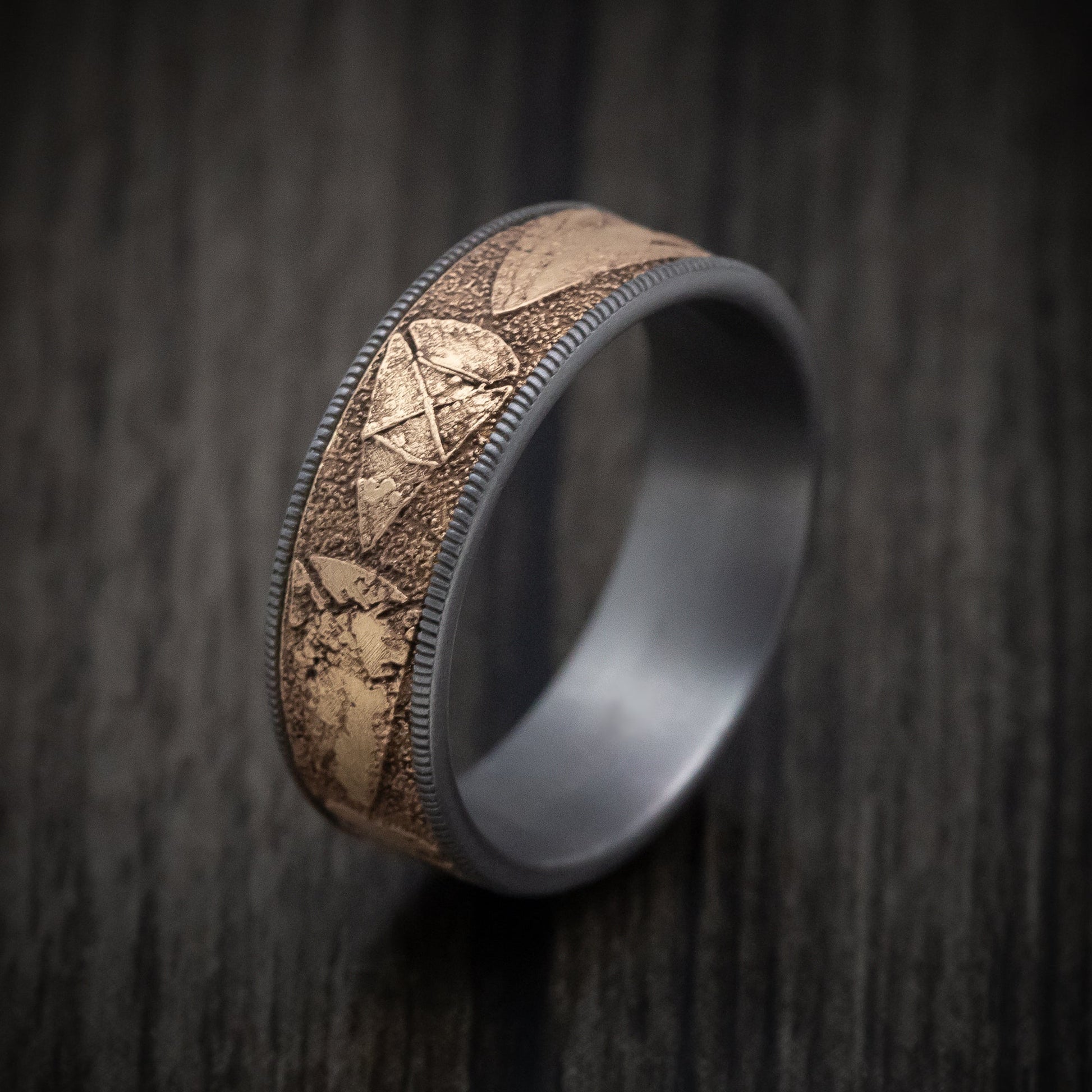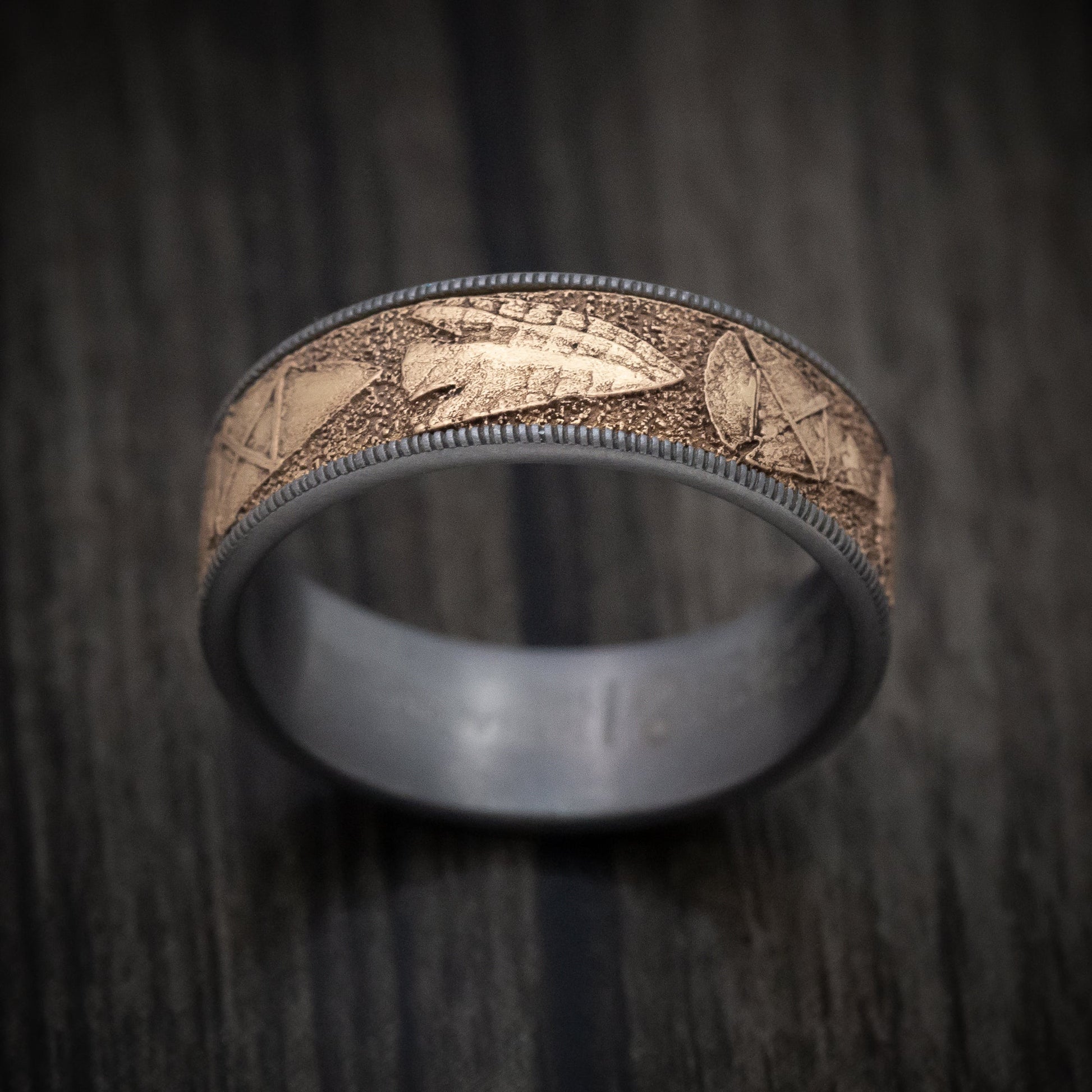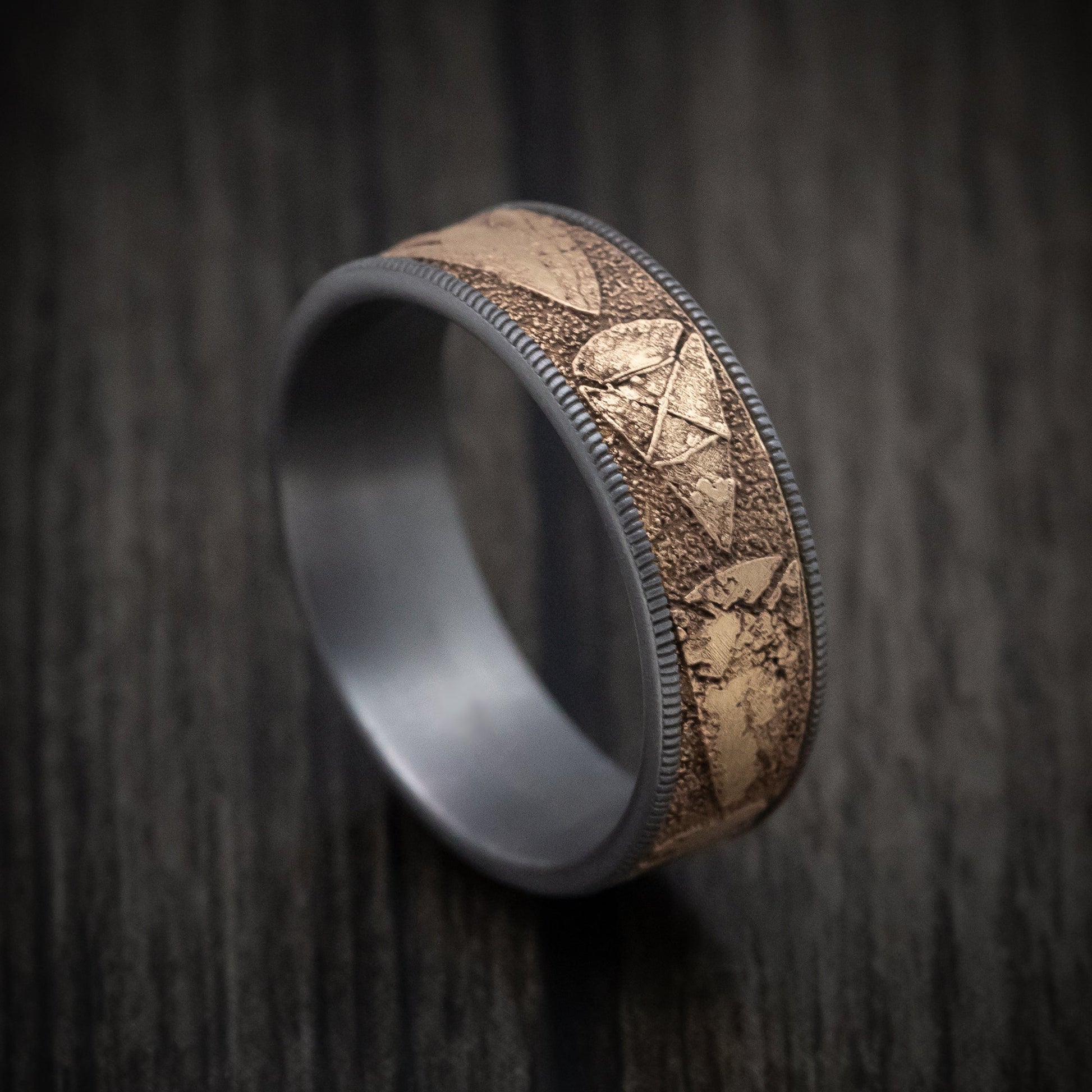 Tantalum and 14K Gold Arrowhead Pattern Ring