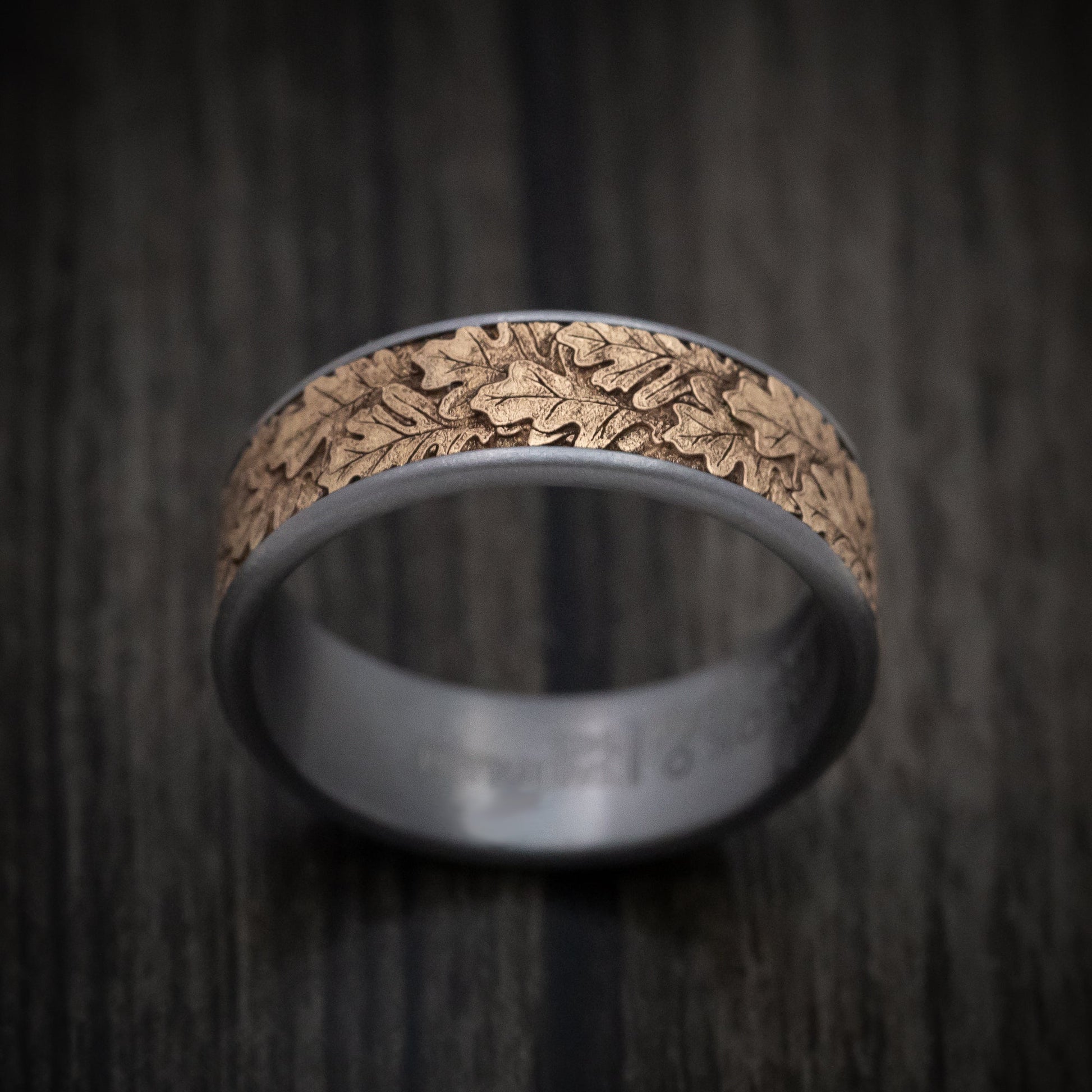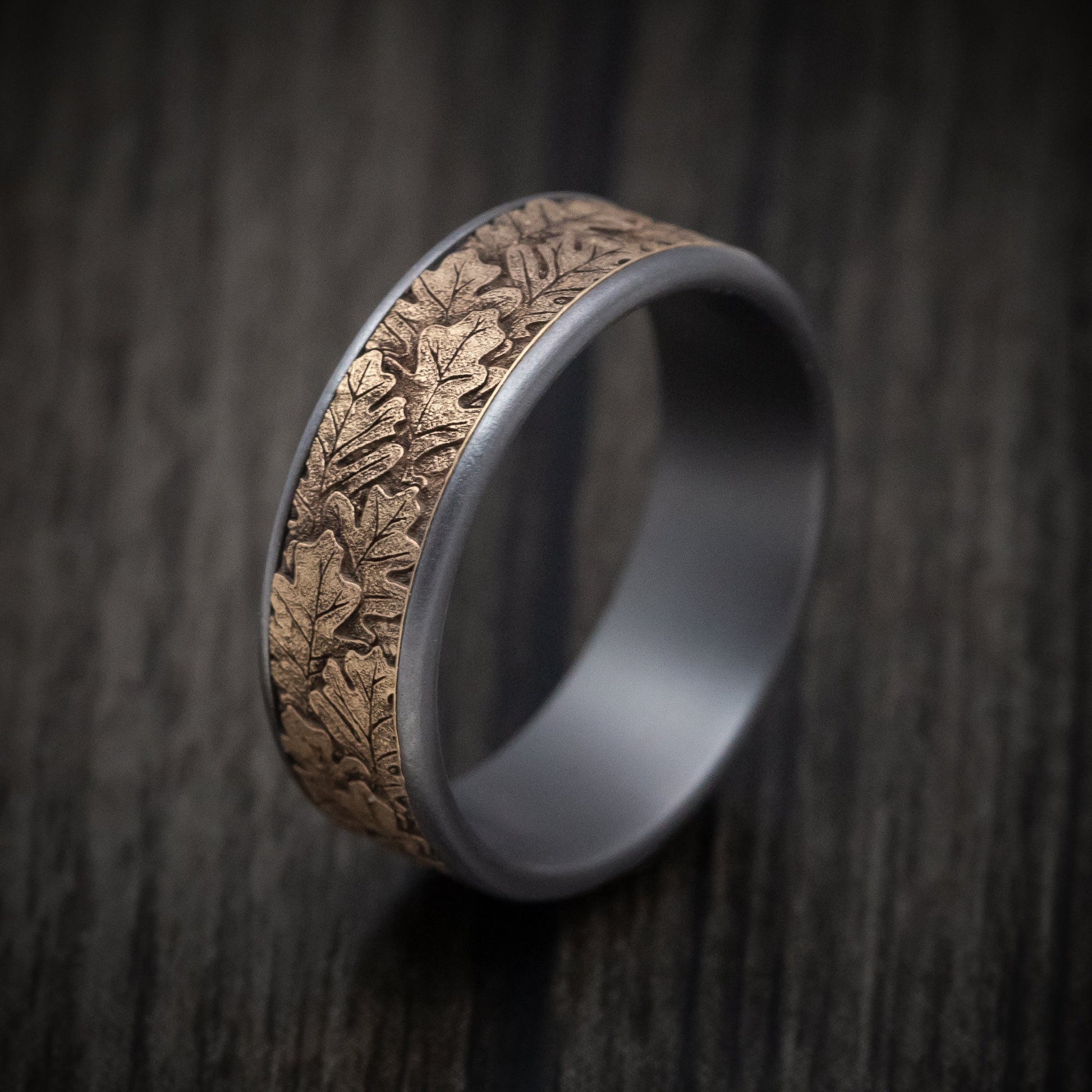 Tantalum and 14K Gold Oak Leaf Pattern Ring