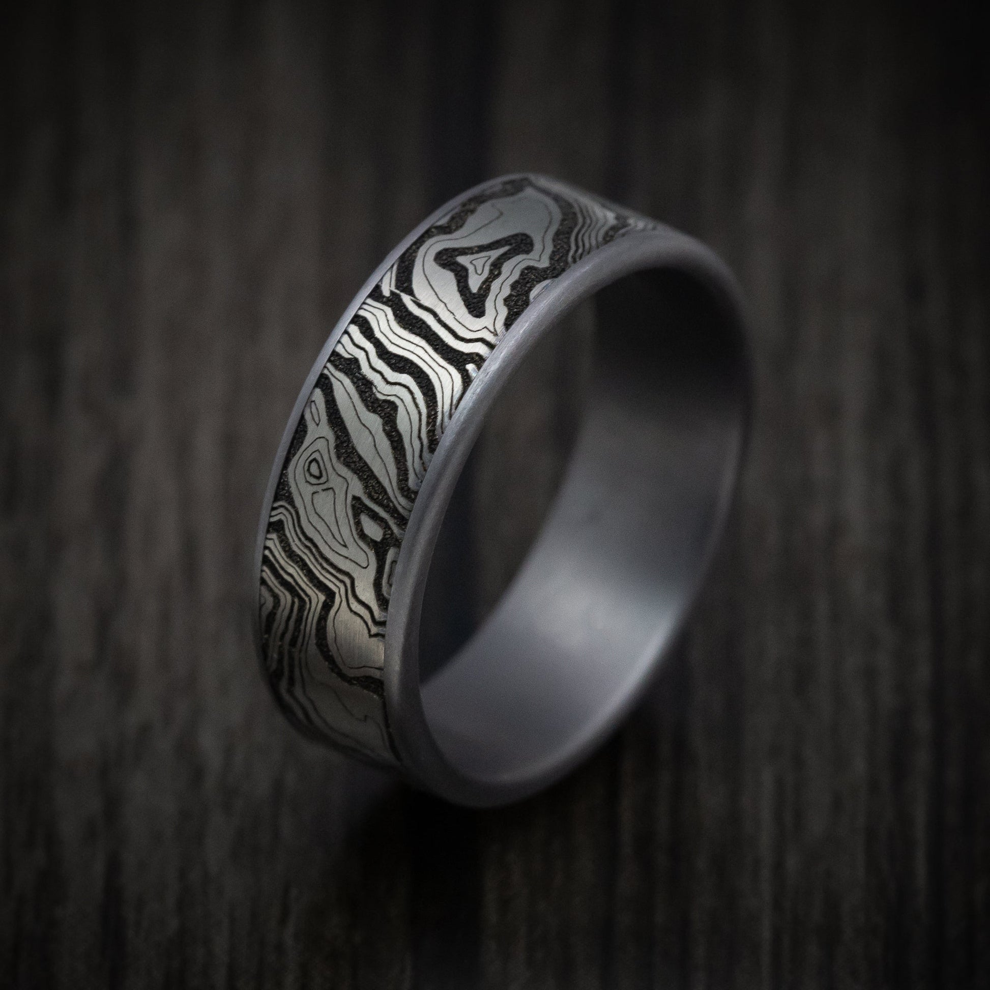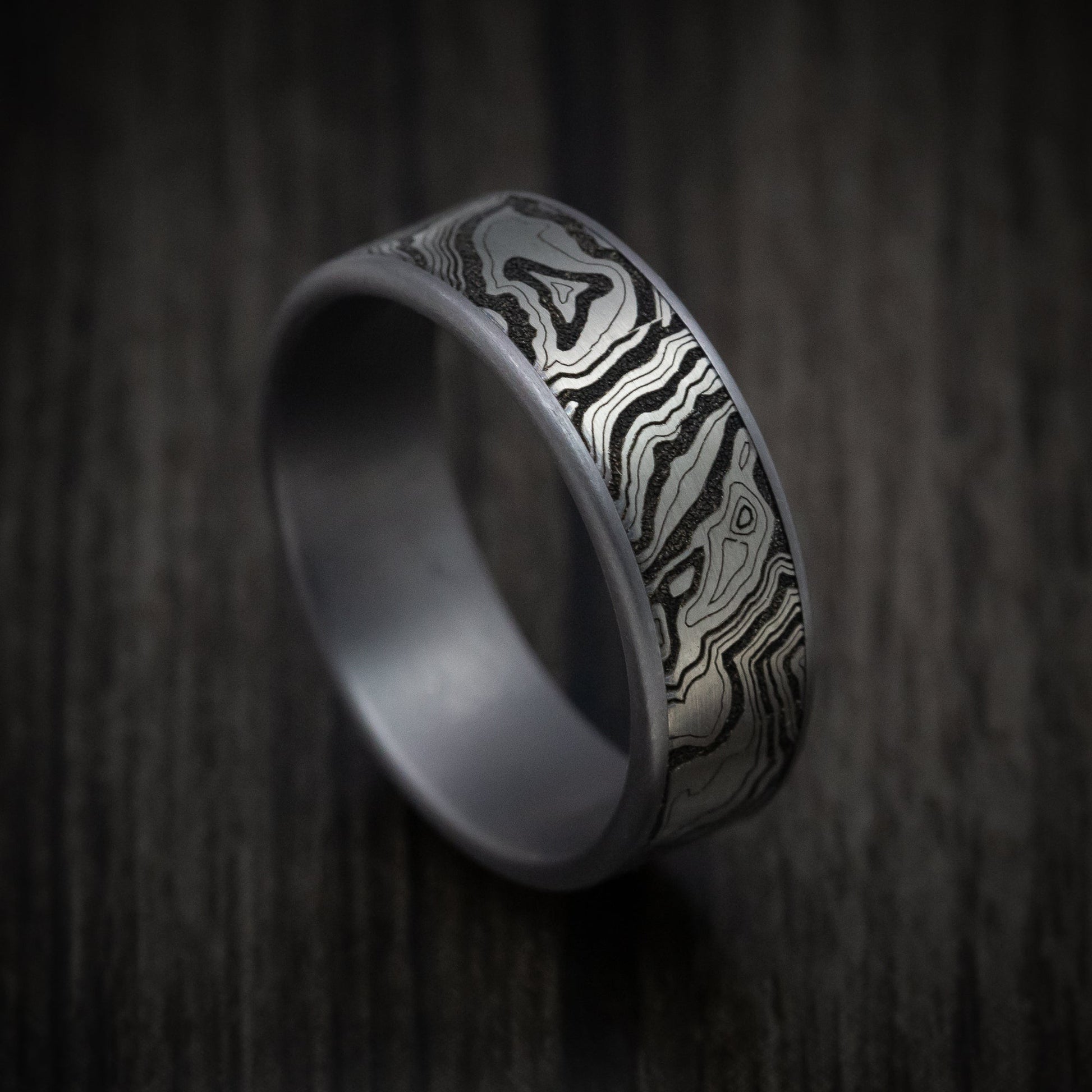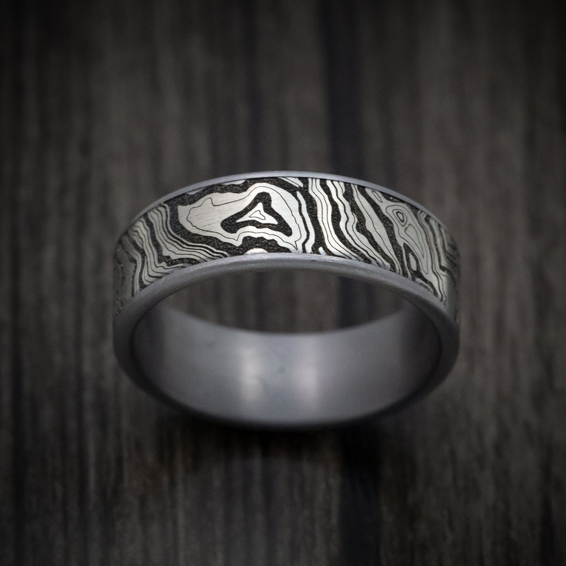 Elegantly crafted, this Tantalum ring from the Brook & Branch Collection by Benchmark Rings features a sleek 7.5mm width, flat shape, satin finish, and a striking black titanium inlay with a topography pattern design. A timeless piece with a touch of modern sophistication.