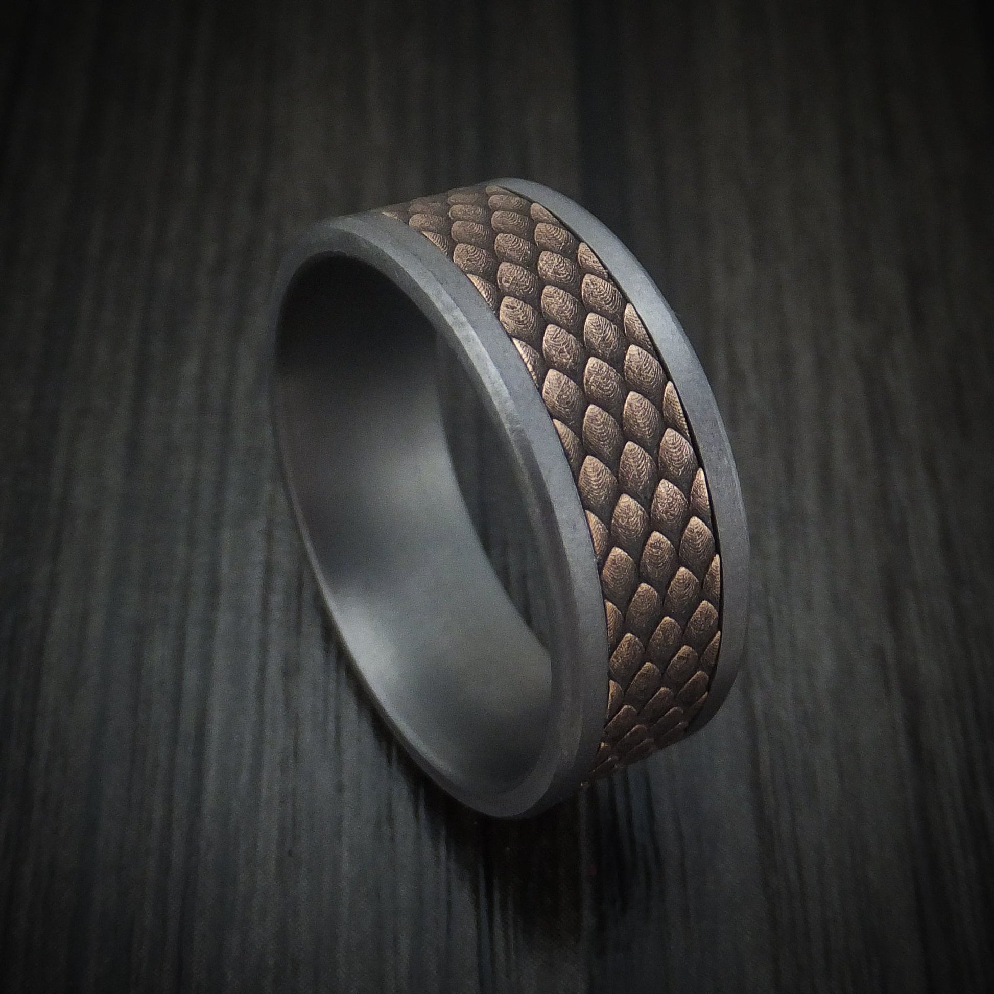 Tantalum and Dragon Scale Textured 14K Rose Gold Men's Ring