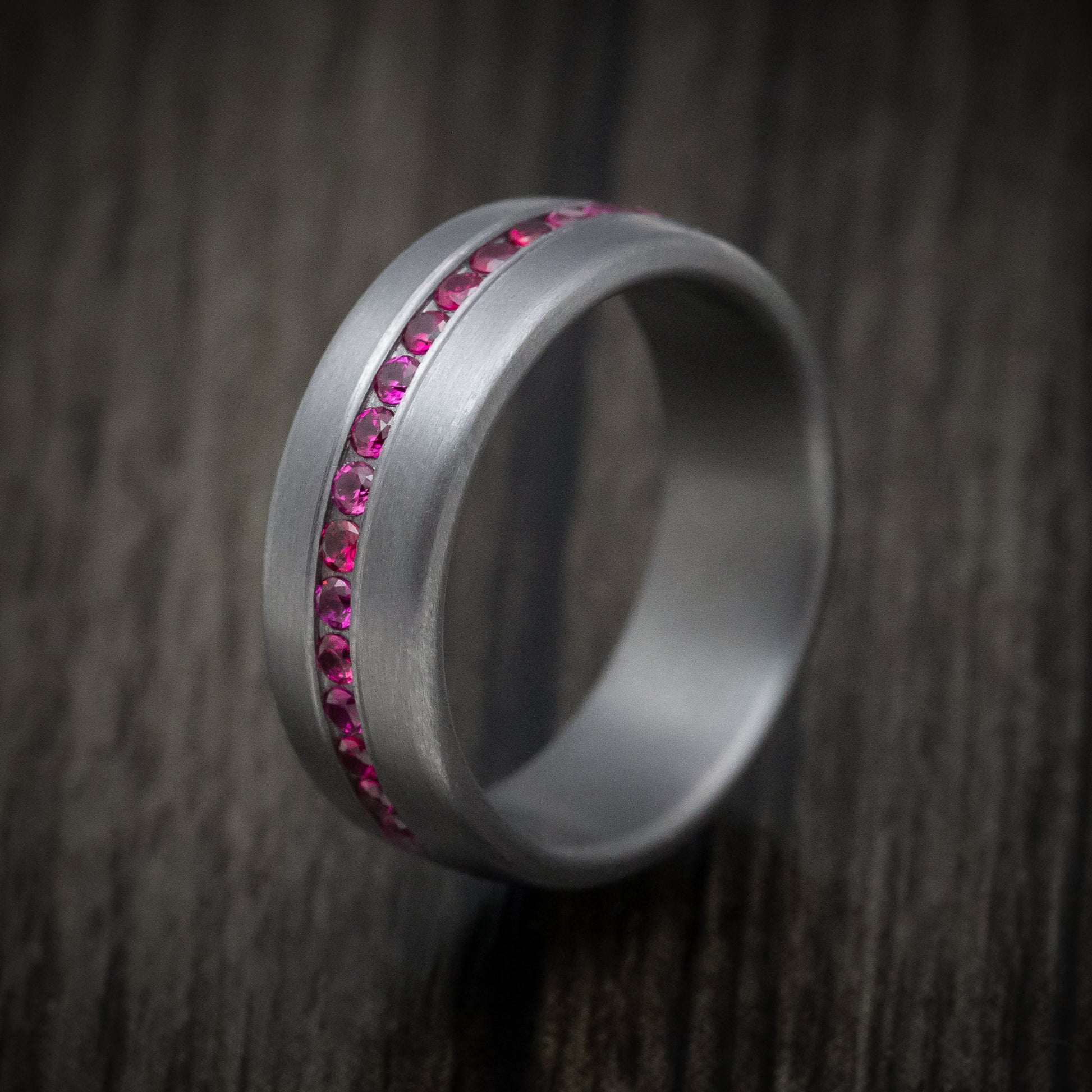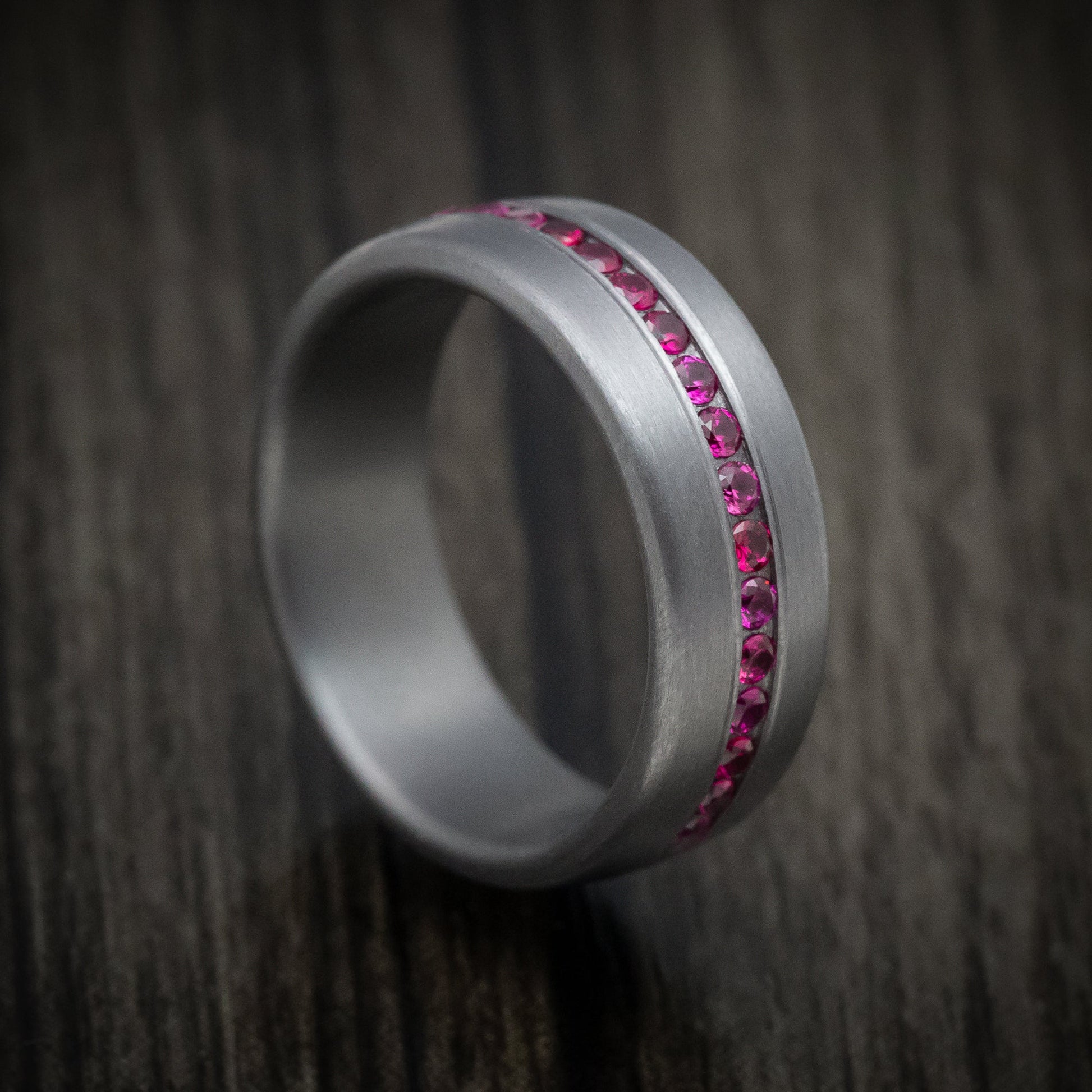 Tantalum Band With Satin Finish And Rubies Custom Made Men's Ring