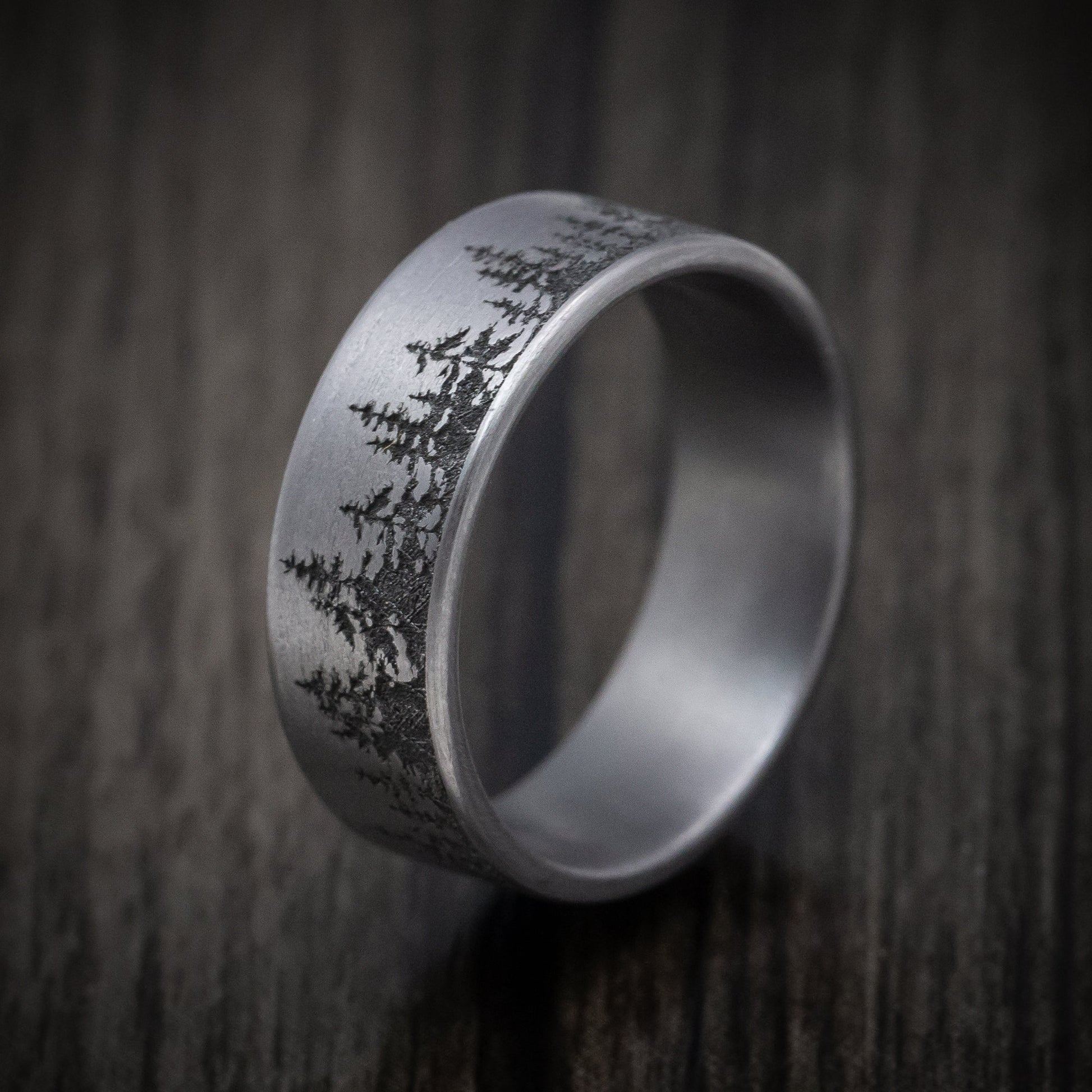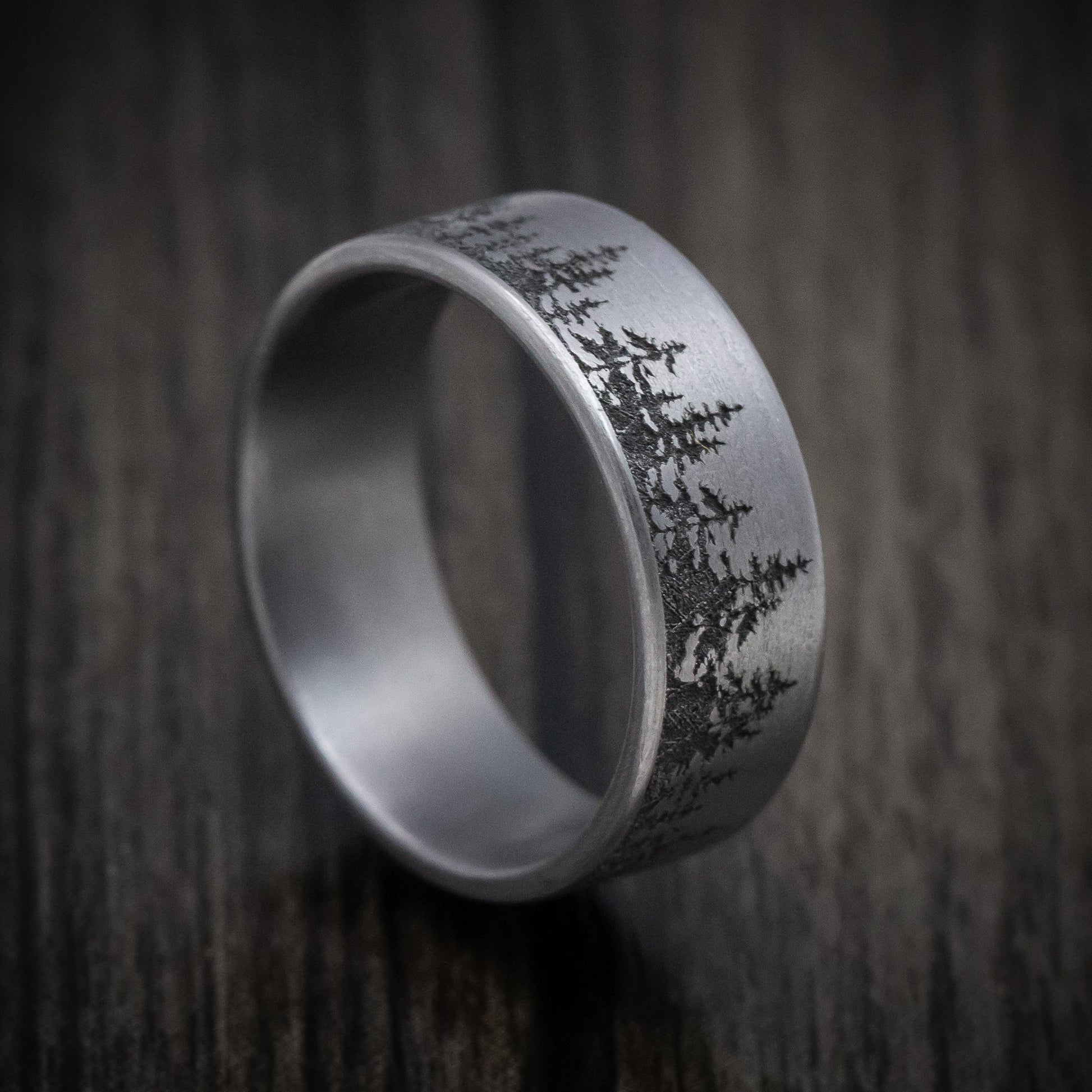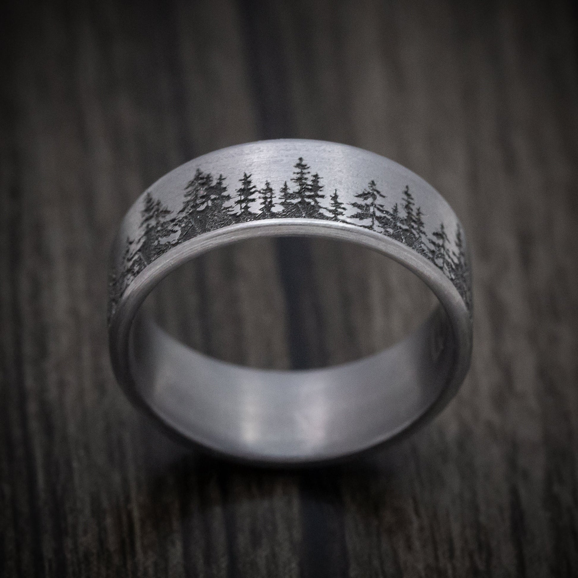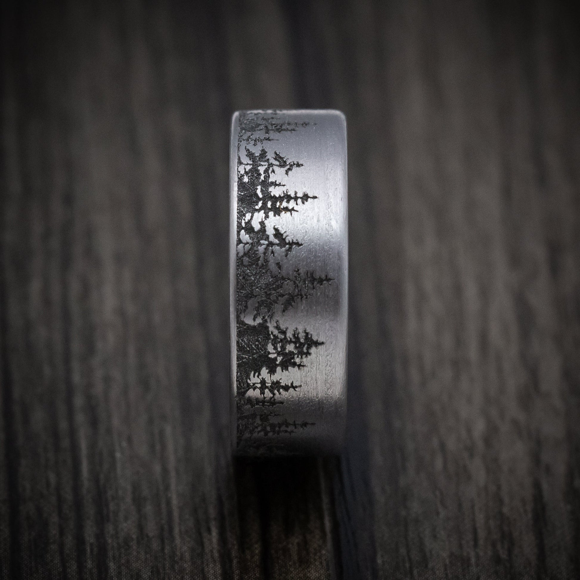 Experience the rugged elegance of our Tantalum ring. With a satin finish and unique pine tree design, this 8mm wide band seamlessly blends classic style with contemporary edge. Crafted with pure Tantalum, it's hypoallergenic and resistant to breakage. Available exclusively through our website.