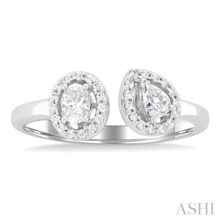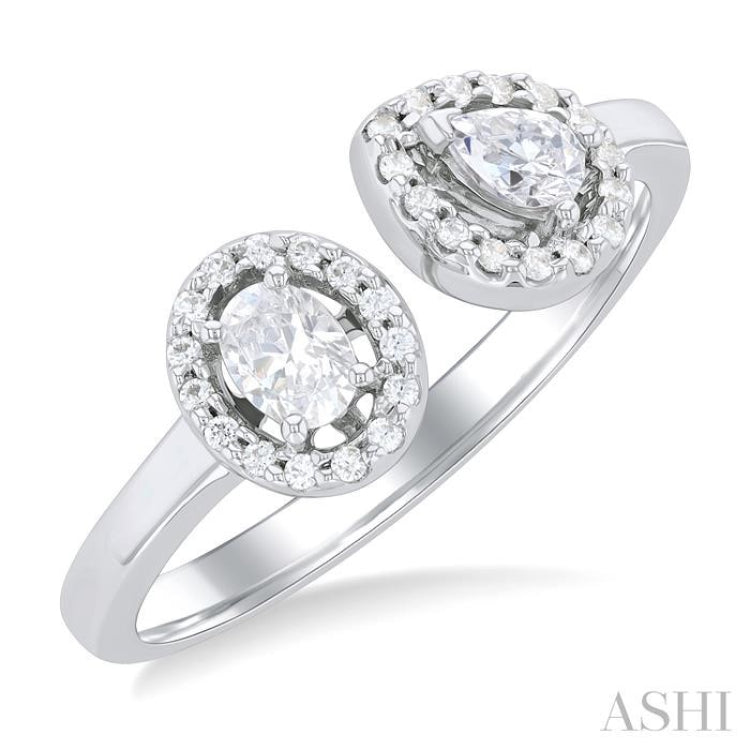 3/8 ctw Toi Et Moi Pear, Oval and Round Cut Diamond Open Fashion Ring in 14K White Gold