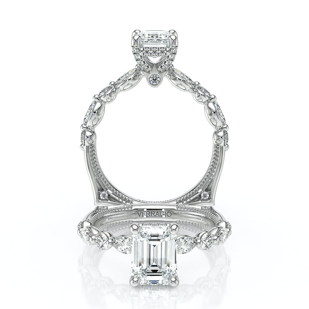 Set for an emerald center, the VNG-2202EM-2.5 features a euro-style shank adorned with alternating round and marquise stones, complemented by a diamond head for a refined and timeless design.