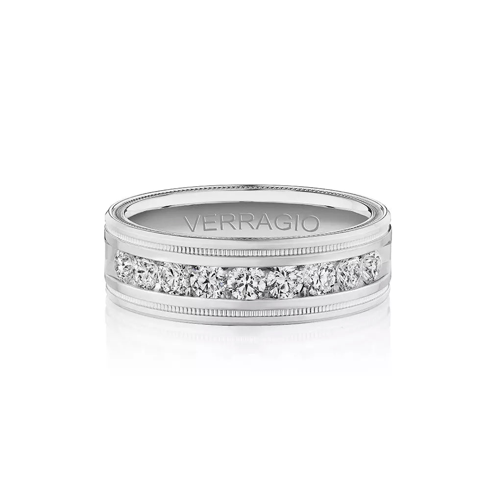 The VWRD-7701-3 features a 7mm band width with 3.00mm channel-set diamonds, framed by exquisite milgrain rows and intricate beading. This band combines timeless elegance with meticulous craftsmanship, making it an ideal choice for those who appreciate luxury and detailed design.