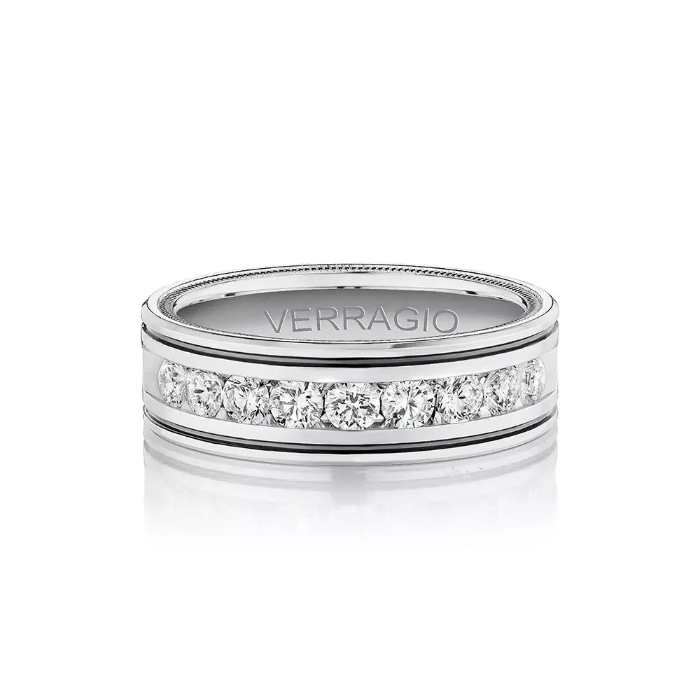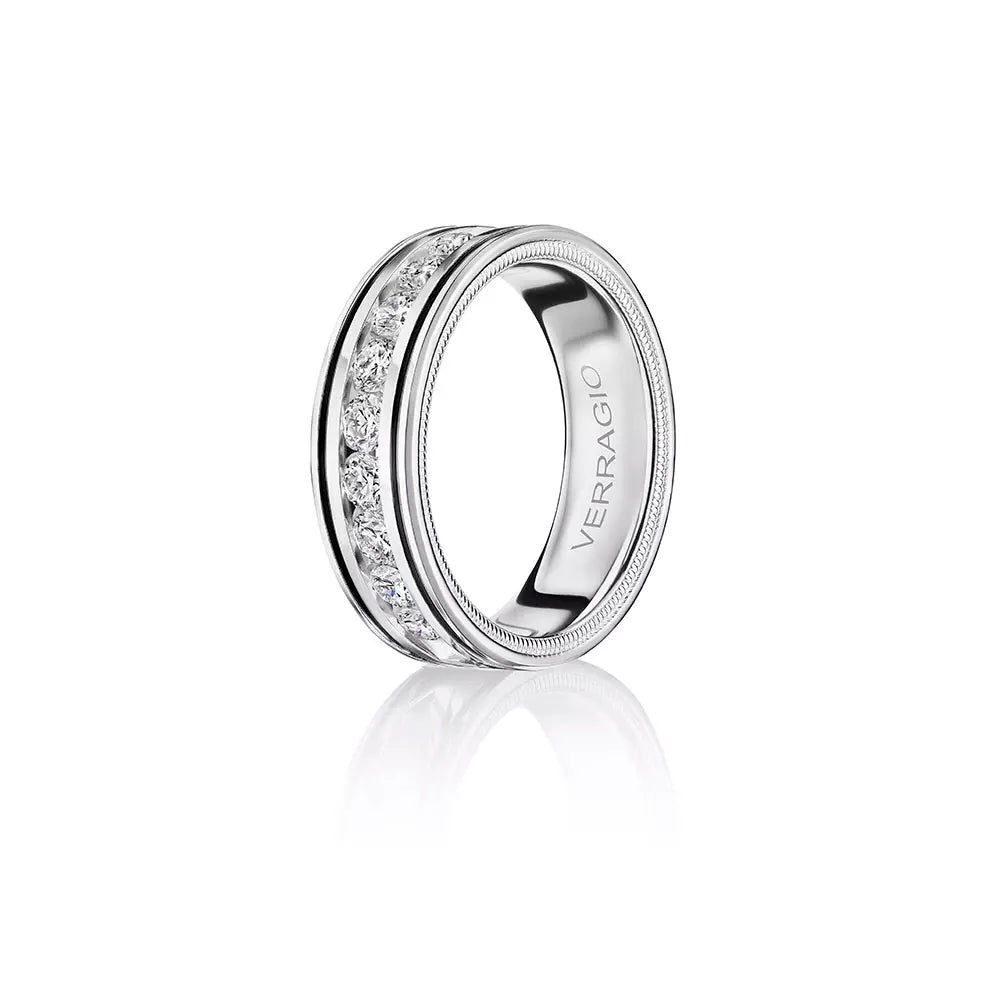 The VWRD-7702-3 stands out with its 7mm width and channel-set 3.00mm diamonds, elegantly accented with black enamel and detailed beading. This design combines modern elegance with classic diamond allure, perfect for those who appreciate a sophisticated touch in their jewelry.